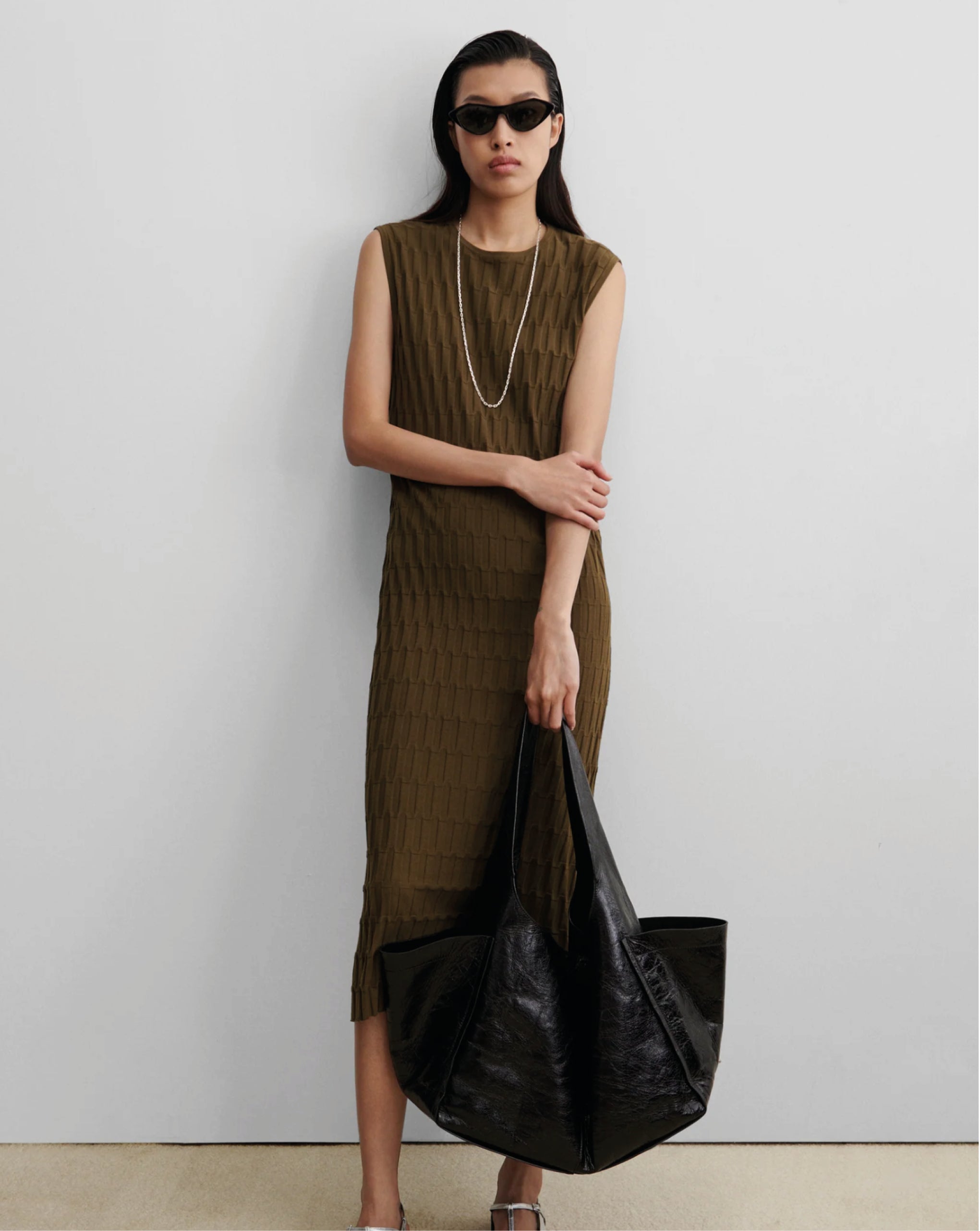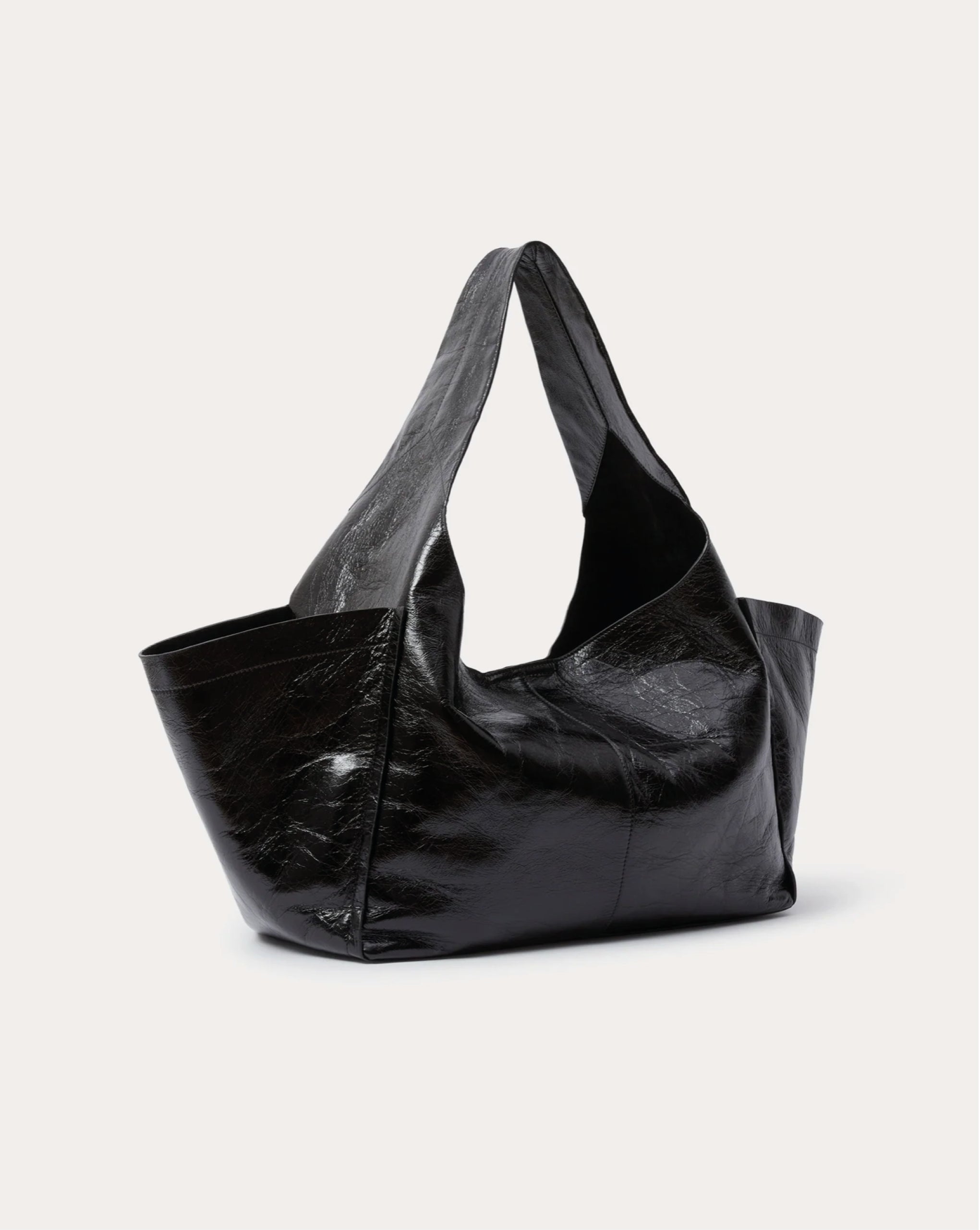 Rachel Comey spacious and elegantly shaped bag offers a fixed shoulder strap, expanded outer pockets, and a magnetic closure