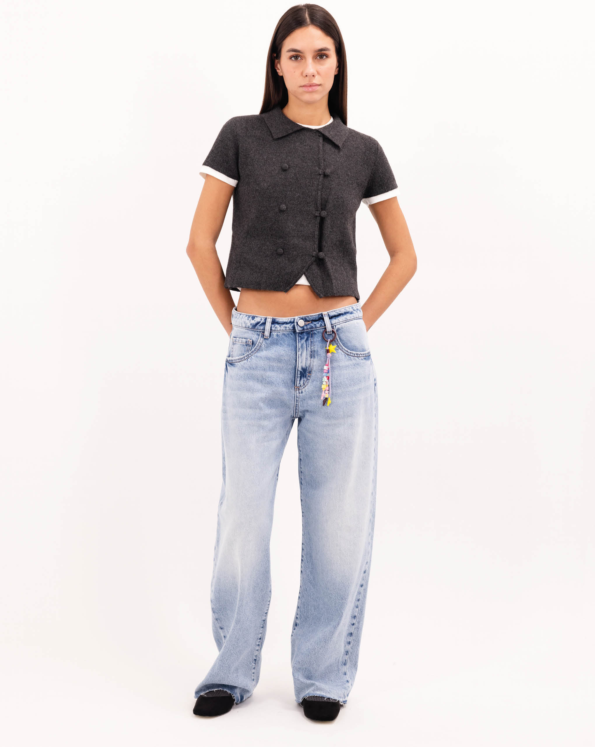 Icon Denim wide leg jeans wit cut off hem and a low-rise waist