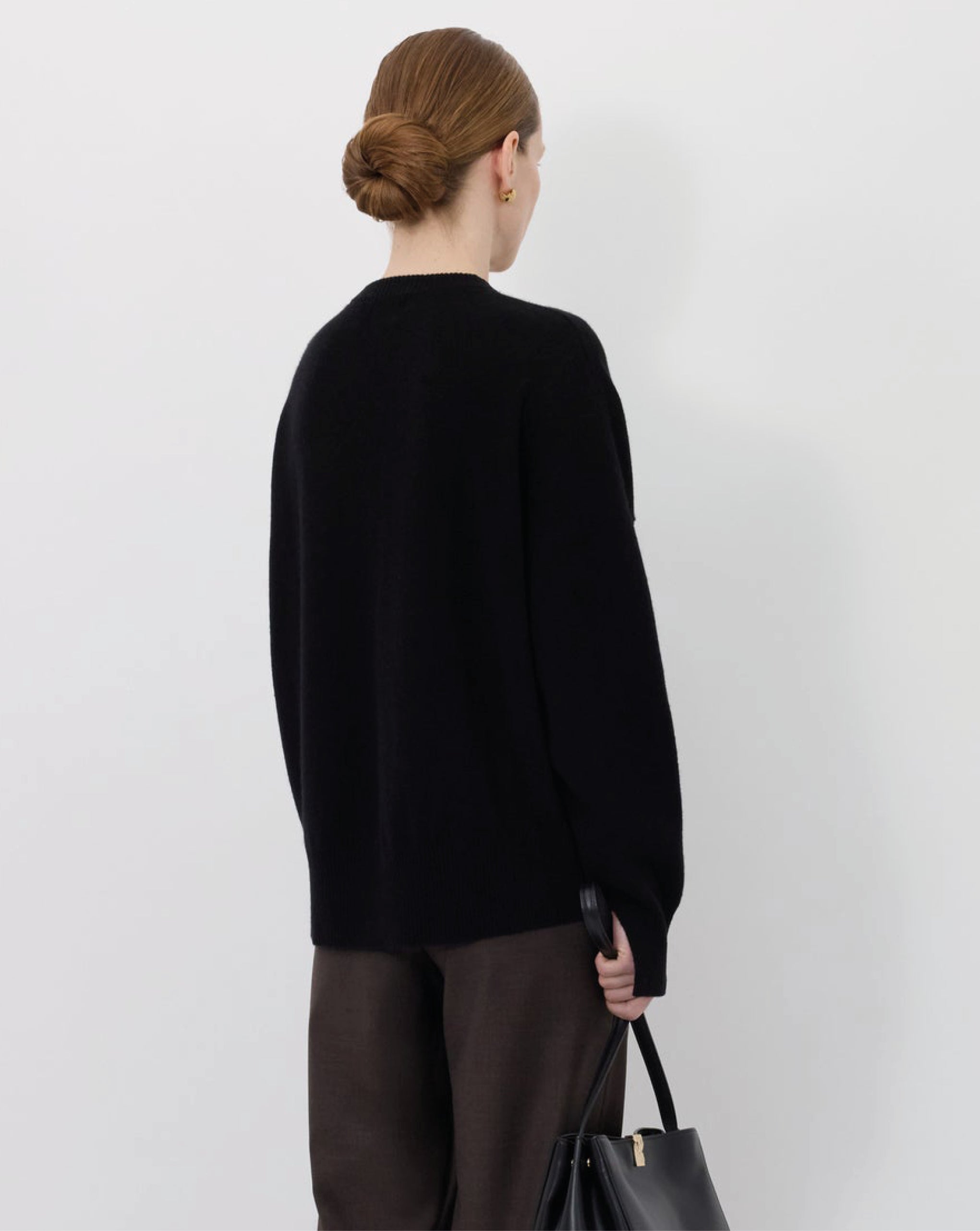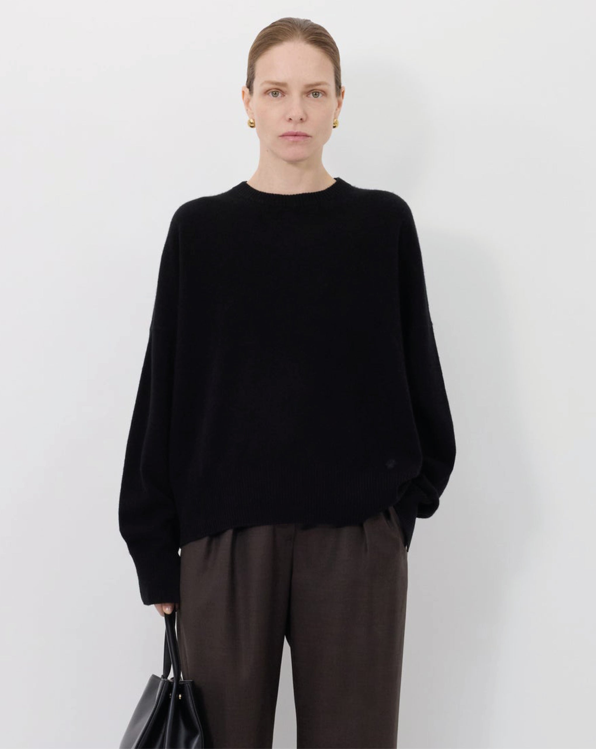 Lou Lou Studio cashmere knit with an elongated and ample fit. It features a crew neck and ribbed finishings, creating a timelessly chic silhouette100% Cashmere Color — BlackTrue to size