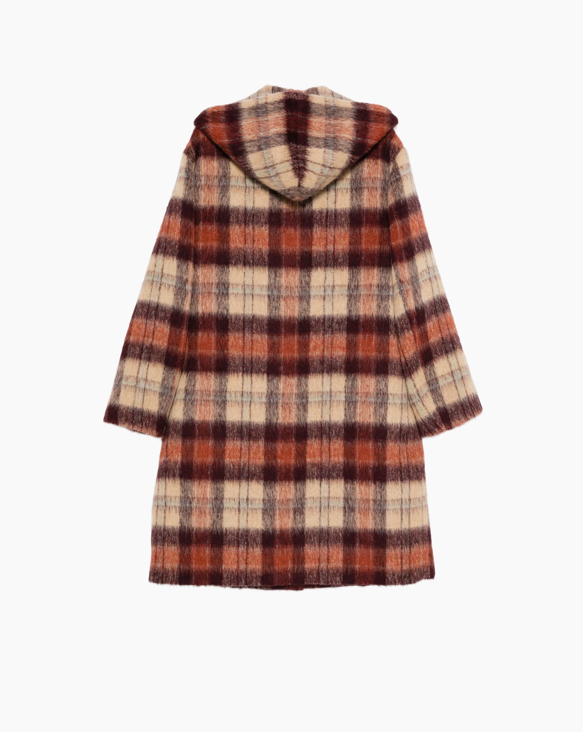 N21 relaxed fit hooded checked coat with button closure