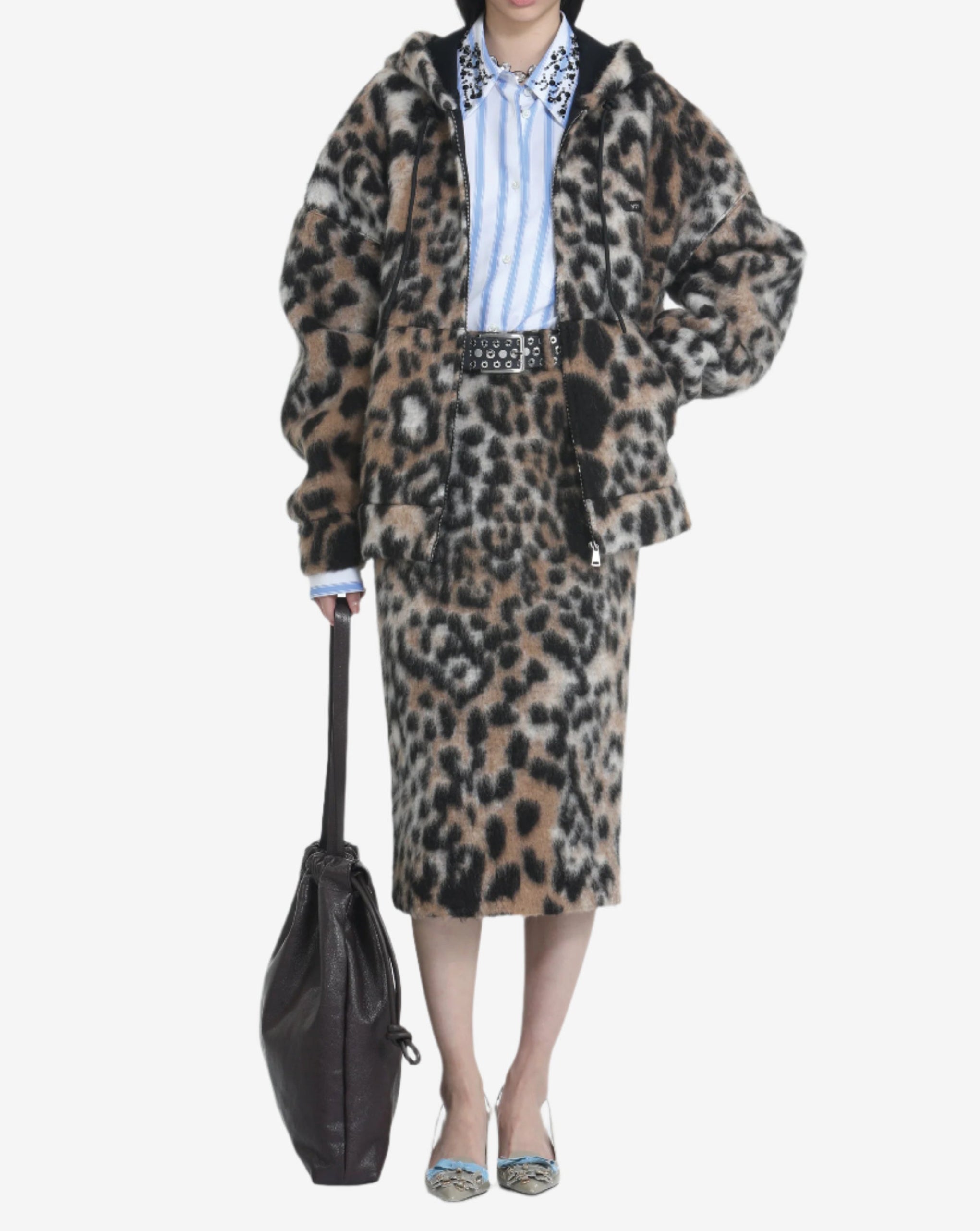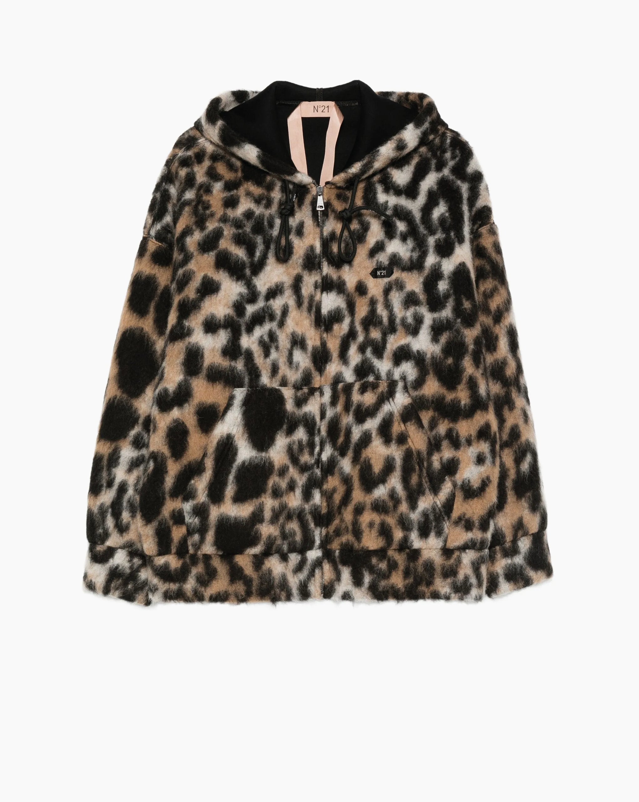 N21 relaxed fit leopard hooded jacket with zipper closure