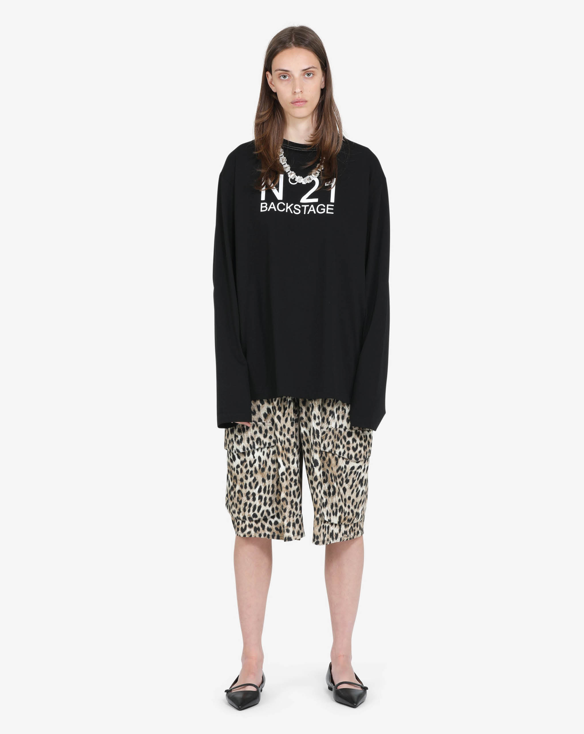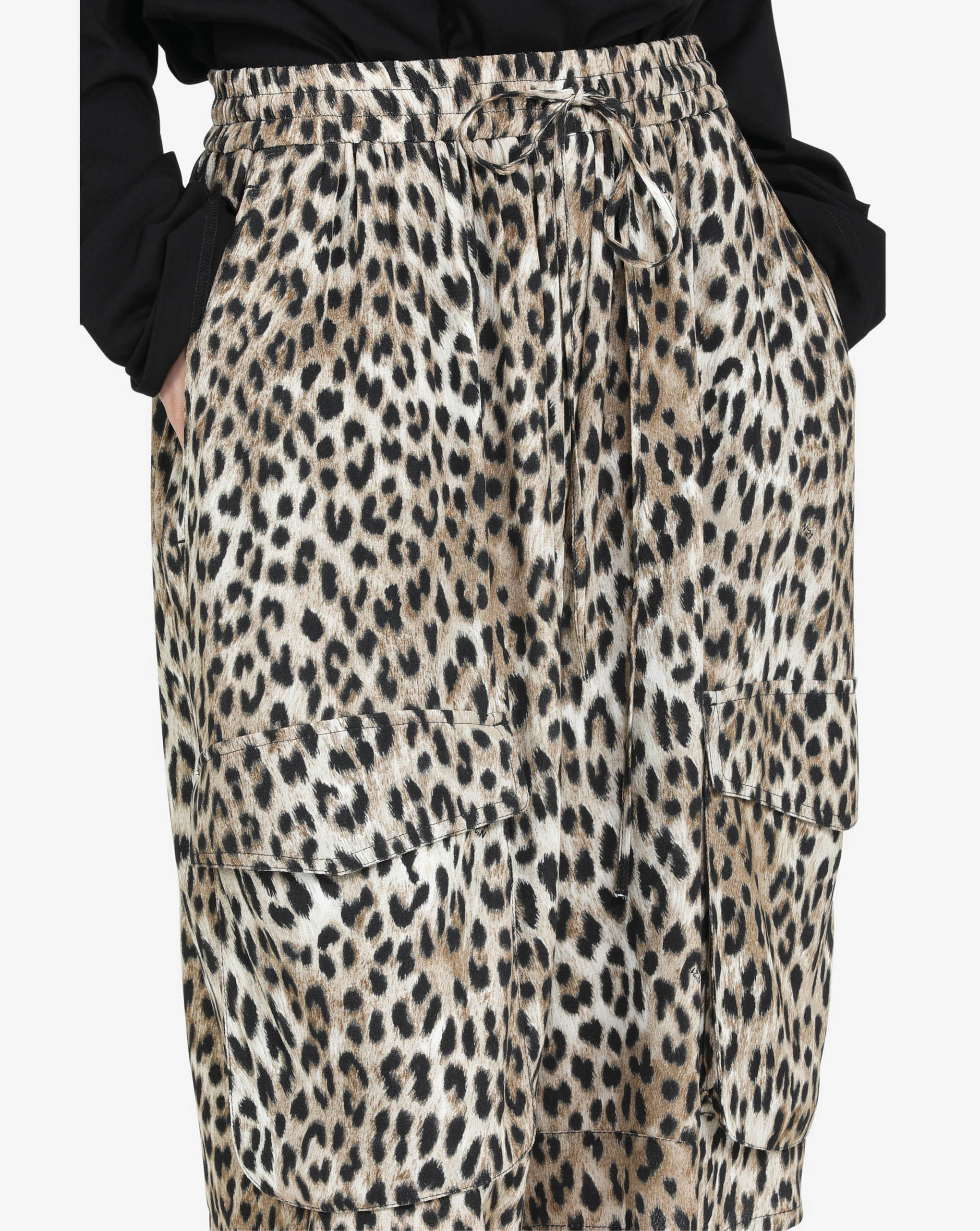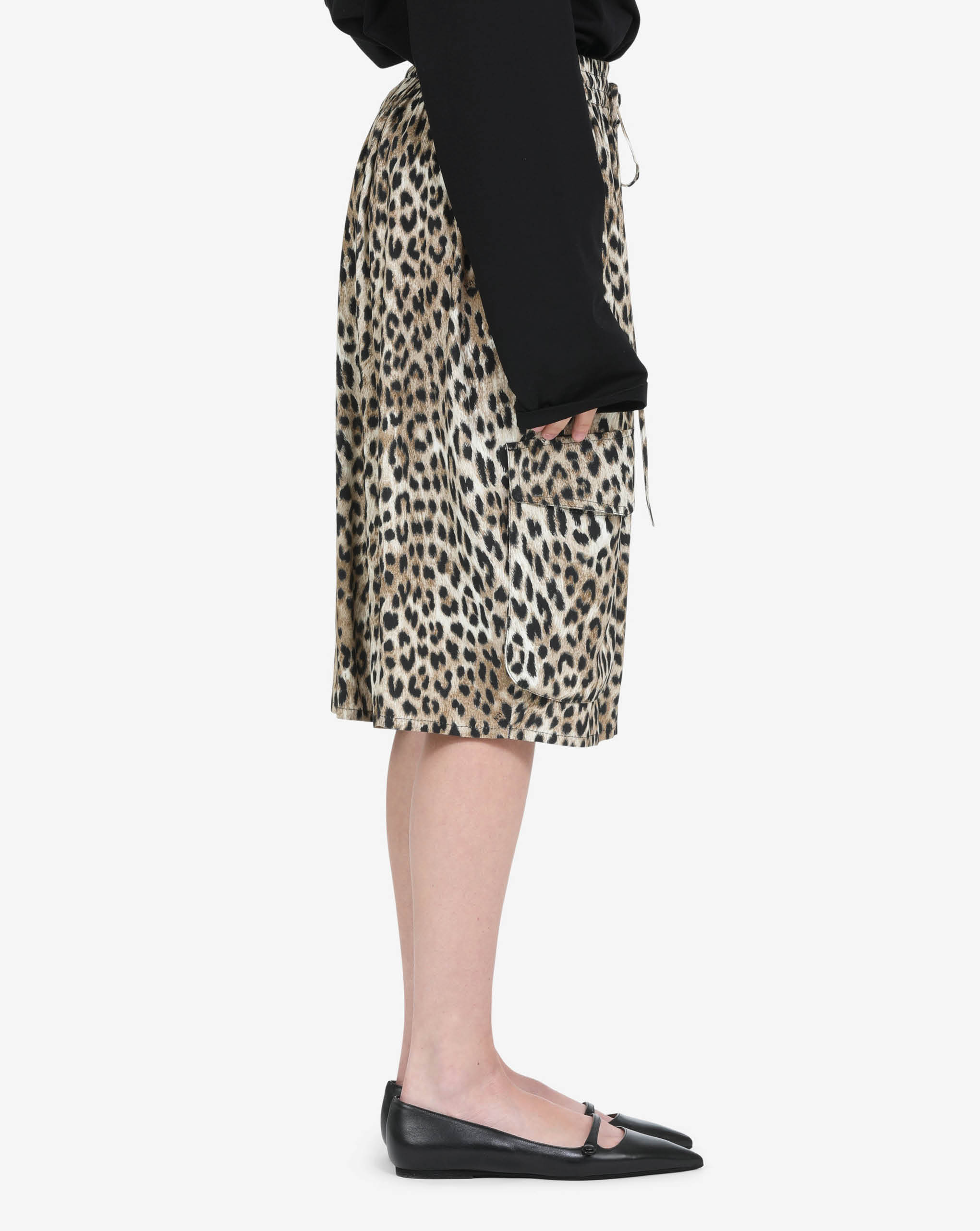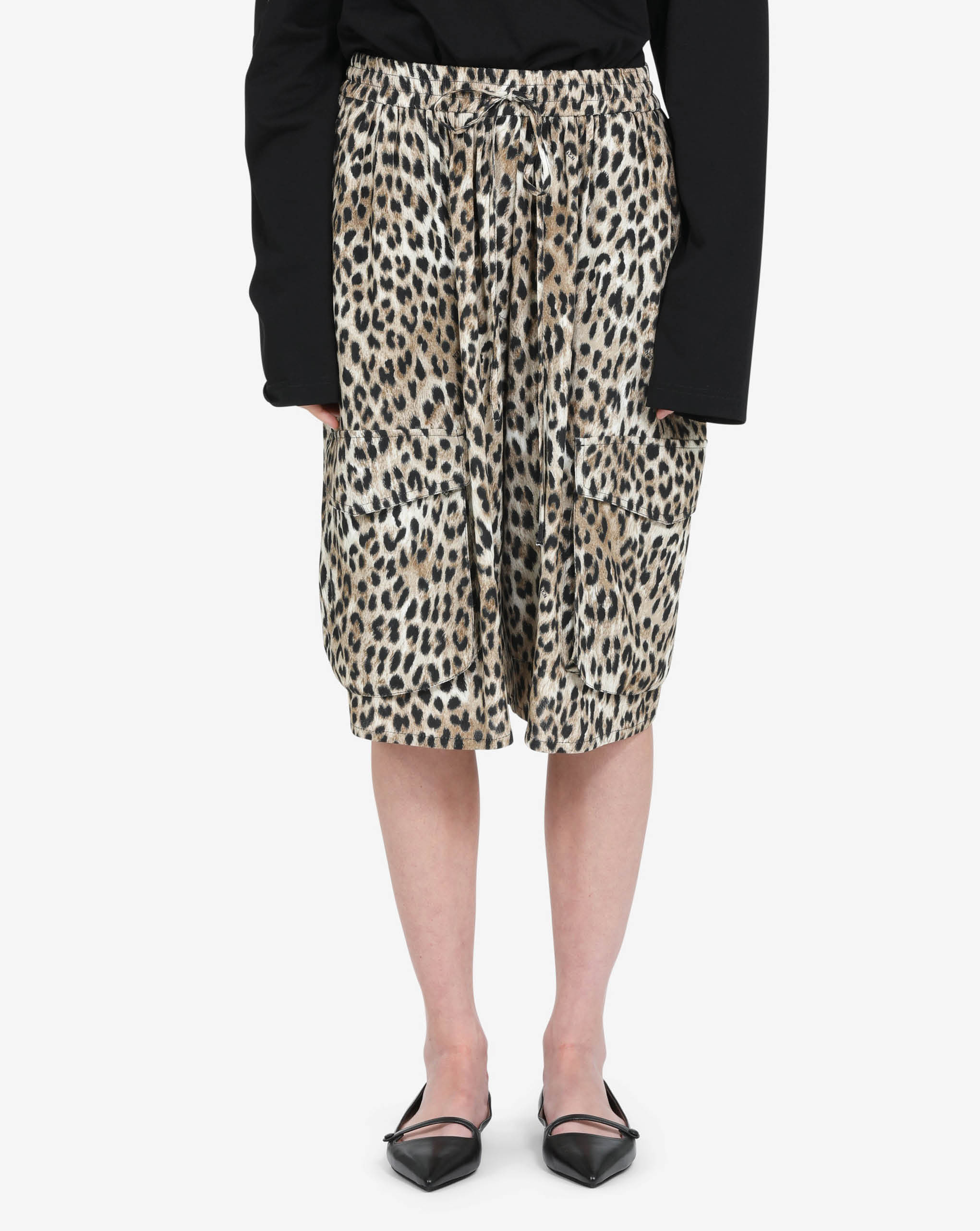 N21 knee-length bermudas in a leopard print made from soft viscose in beautiful beige, brown, and black tones. The elastic waistband with drawstring adjustment lets you customize your comfort, while roomy patch pockets keep essentials close by. Reinforced seams mean these trousers are built to last, giving you a reliable piece you can depend on for countless occasions