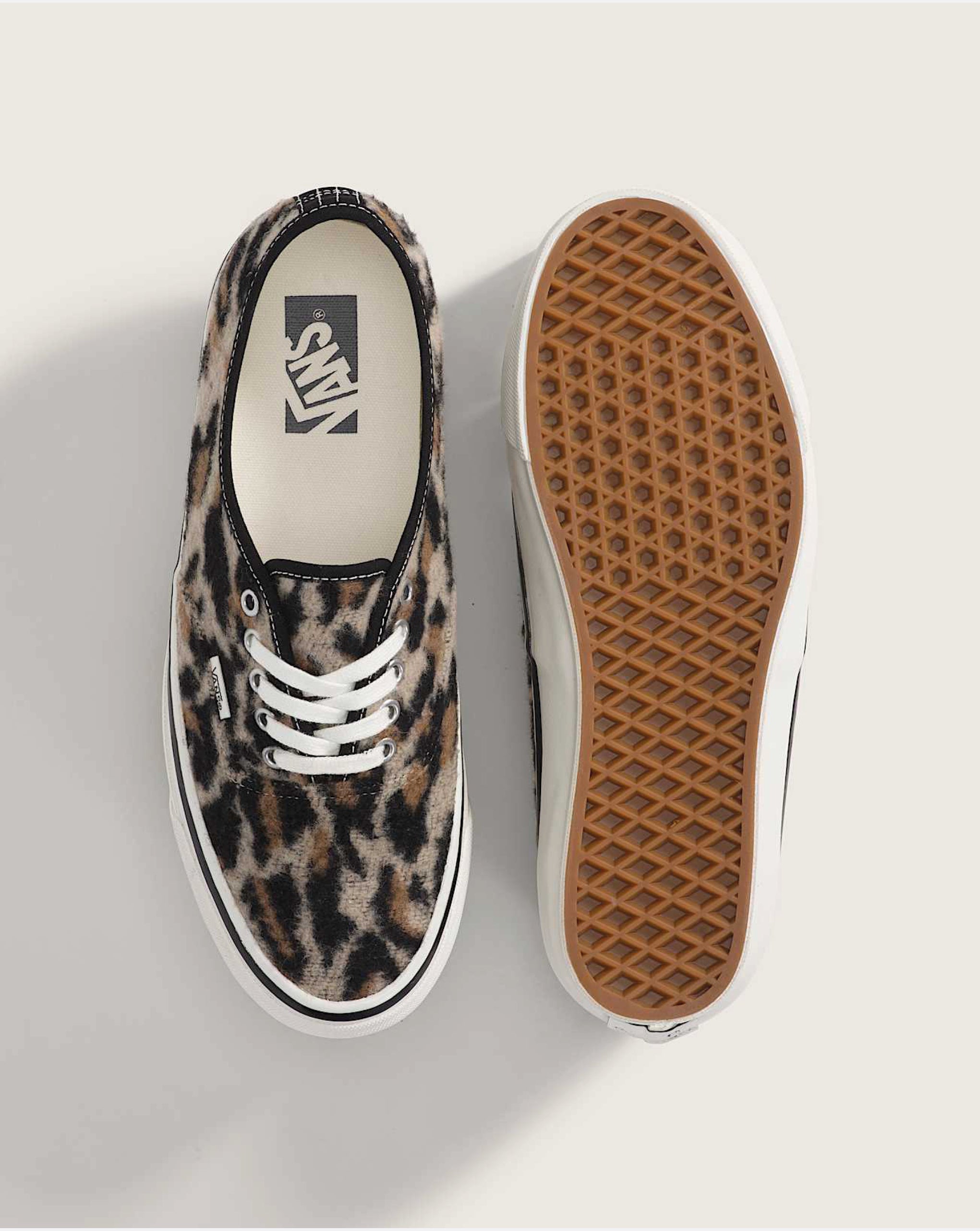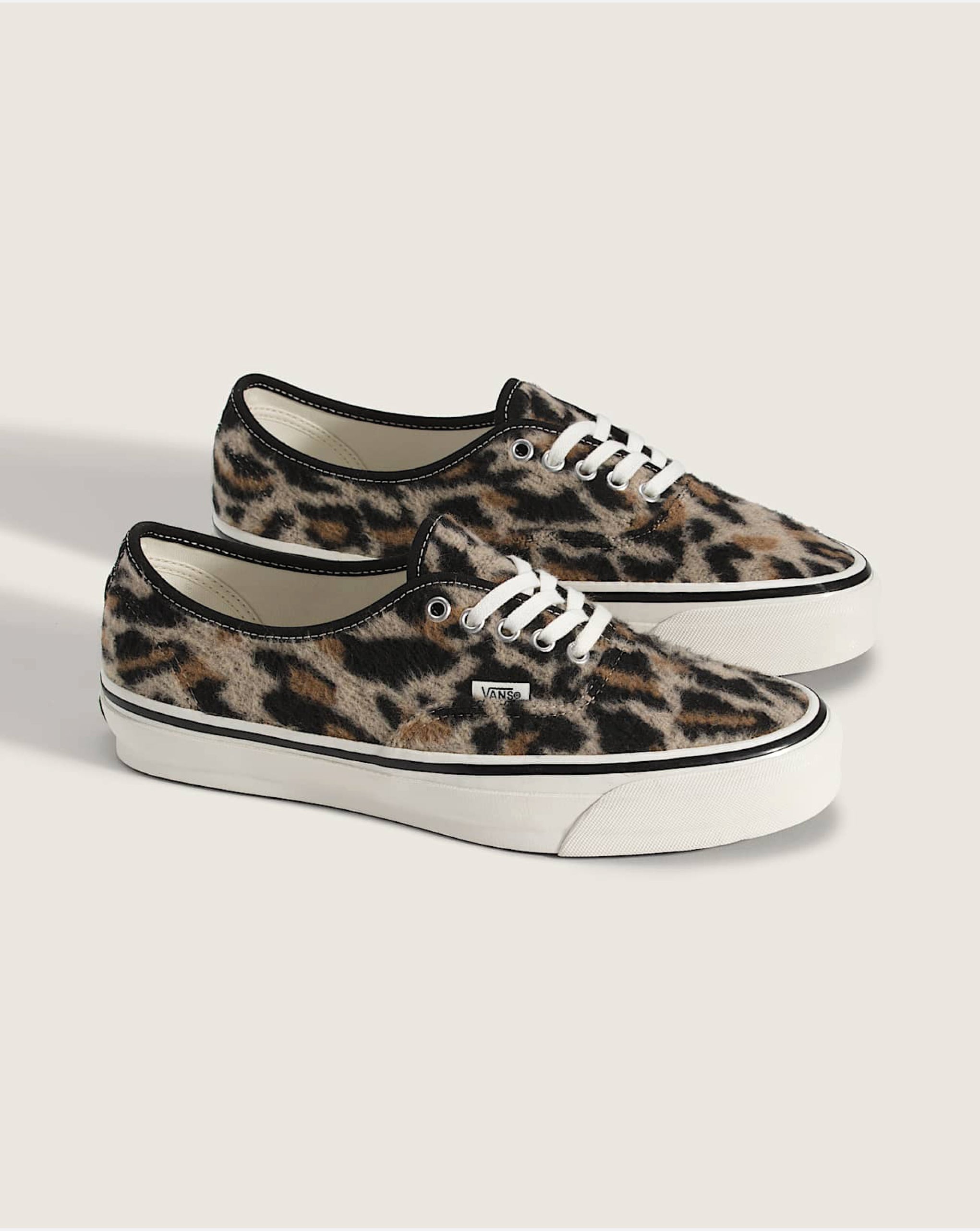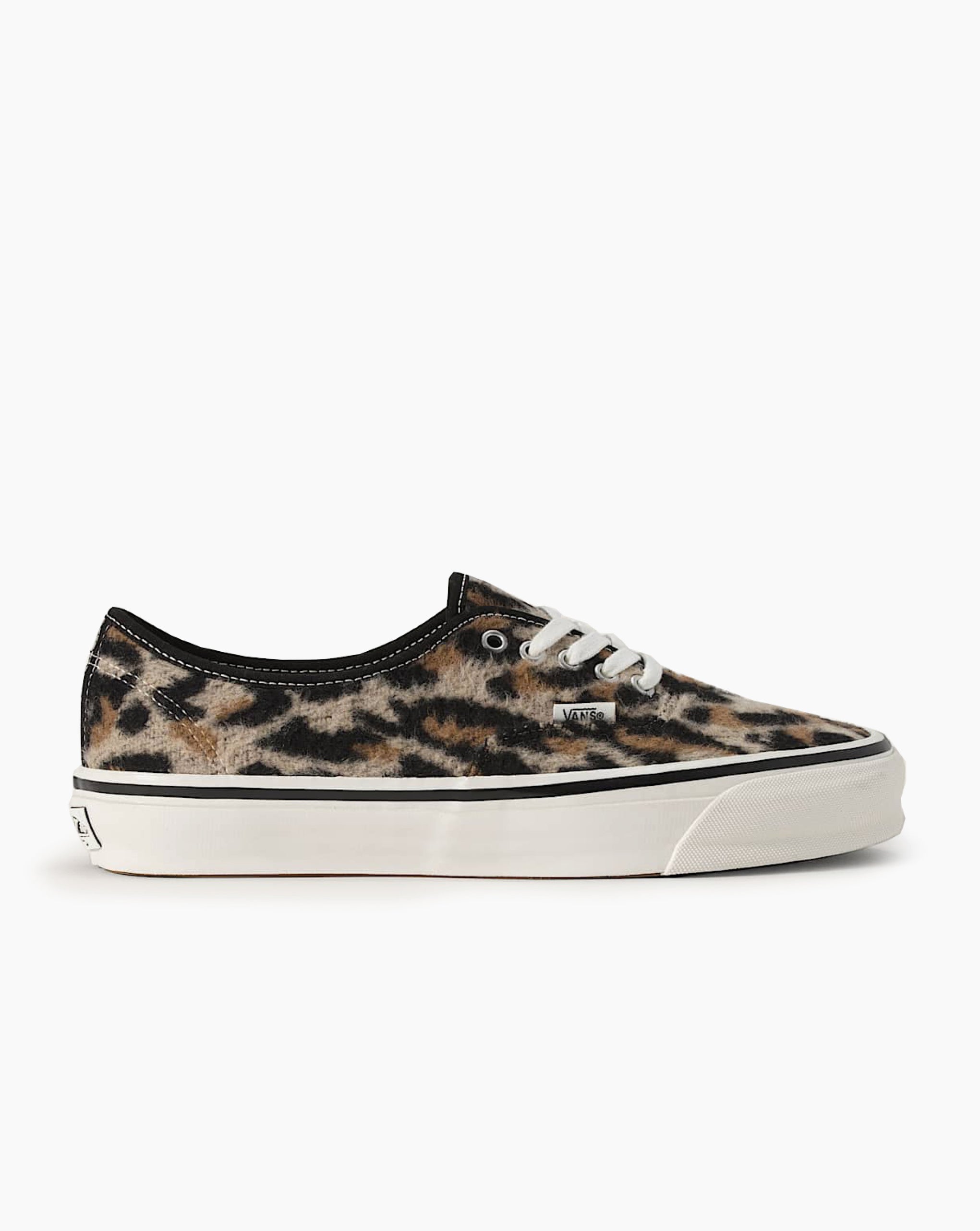 Vans Authentic LX 44 Sneaker in leopard fabric. Originally known as the Style 44, Vans' first gift to the world in 1966 was its Authentic LX model, a testament that could tell the story of California in the 70s, export skate culture to the world, and become a silhouette for all generations