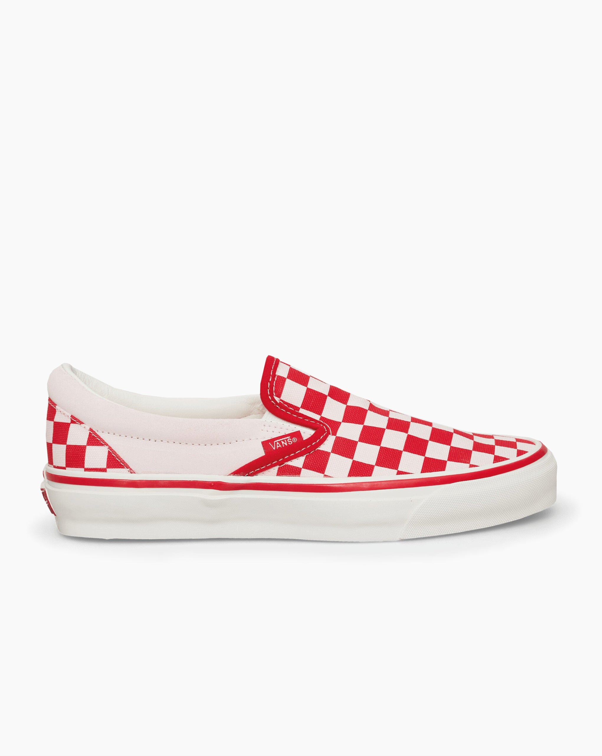 Vans Classic Slip-On Reissue 98 in a checkered canvas upper. First introduced in 1977, the Vans #98-now known as the Classic Slip-On-instantly became an icon in Southern California. Fast forward to today, and the Classic Slip-On is known worldwide for its comfortable silhouette, easy wearability, and beloved design.