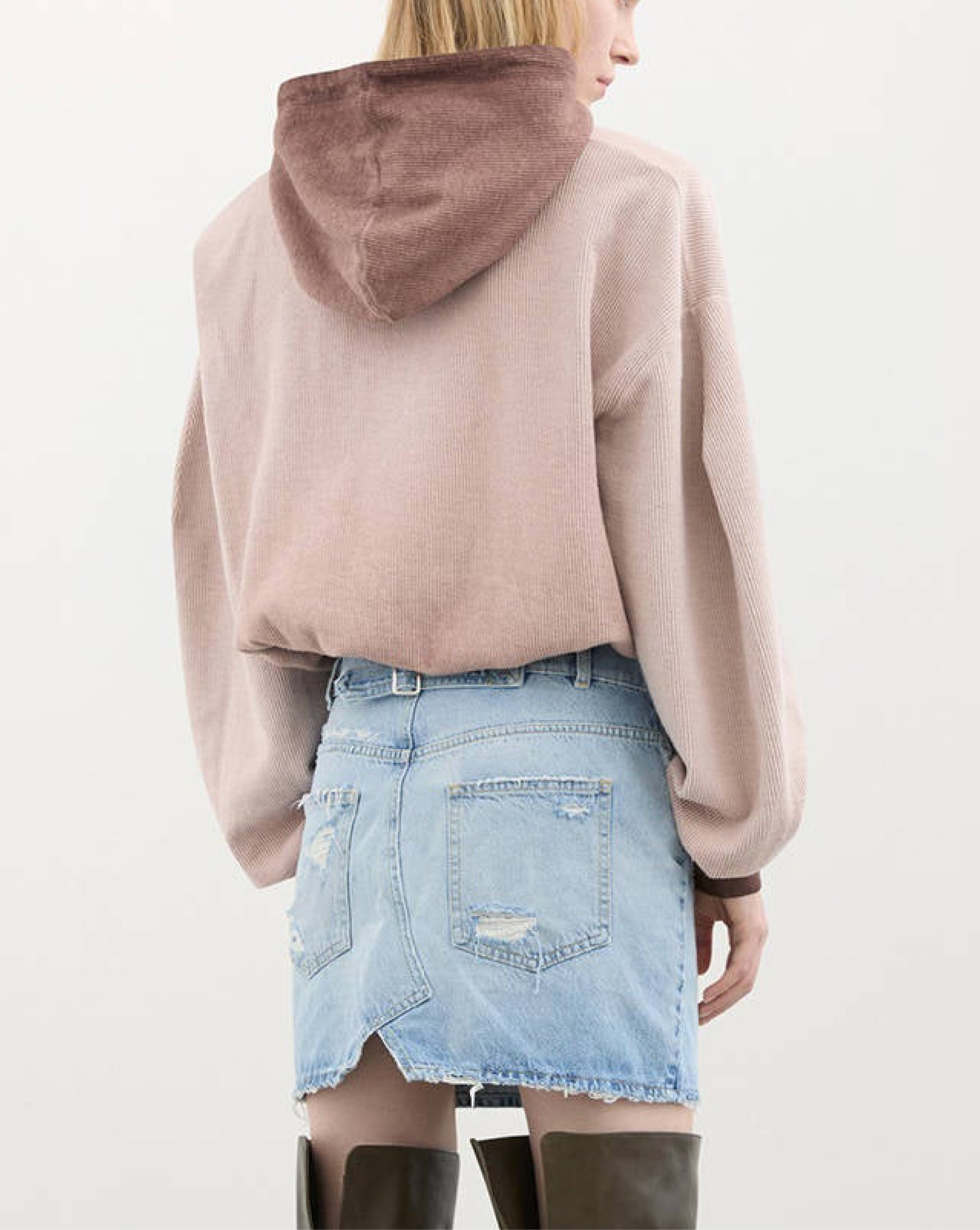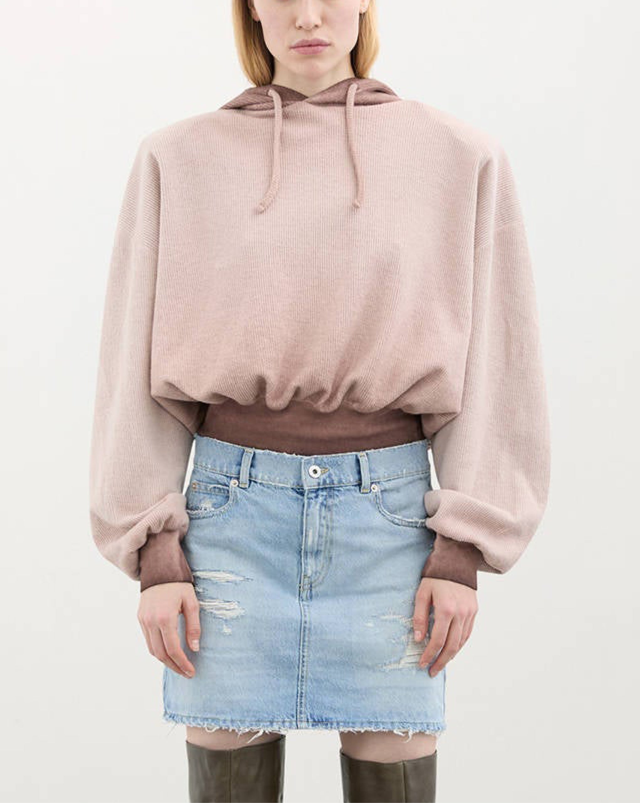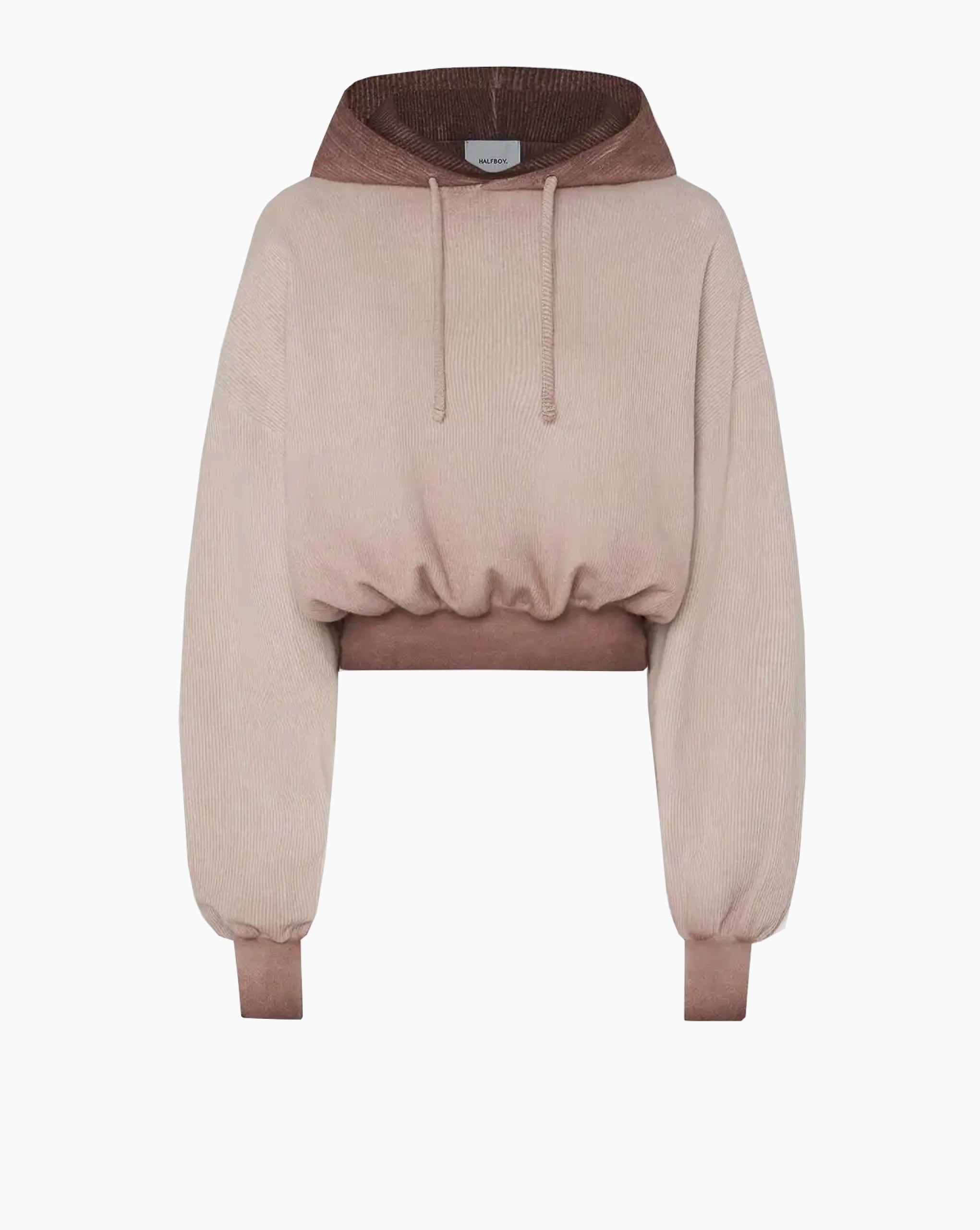Halfboy cropped hoodie brings a modern twist to a classic wardrobe essential. Designed with a relaxed silhouette, dropped shoulders, and an elasticated hem, it offers both comfort and a flattering shape. The textured cotton fabric adds depth and dimension, while ribbed cuffs and an adjustable drawstring hood complete the look