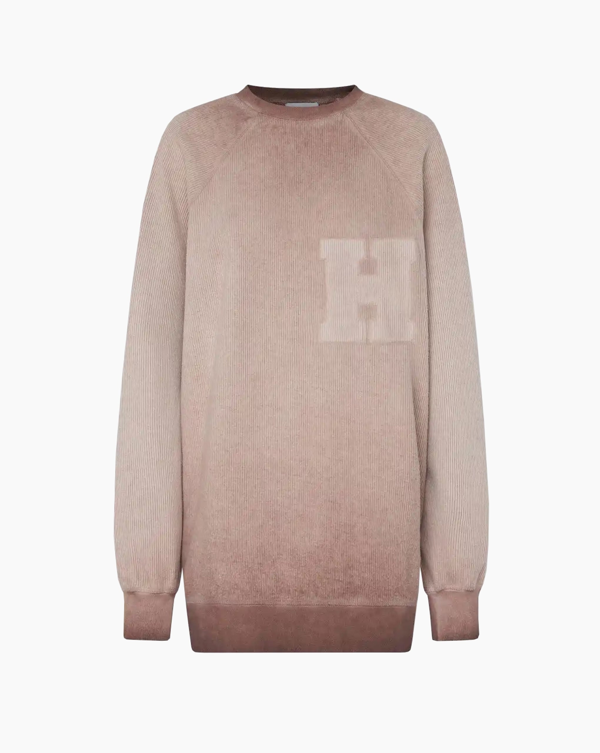 Halfboy oversized crewneck sweatshirt defined by its relaxed silhouette and textured finish. Designed with raglan sleeves and ribbed trims, it combines comfort with a modern street-inspired aesthetic. The tonal H detail at the chest adds a subtle graphic accent, while the pure cotton construction ensures breathability and softness