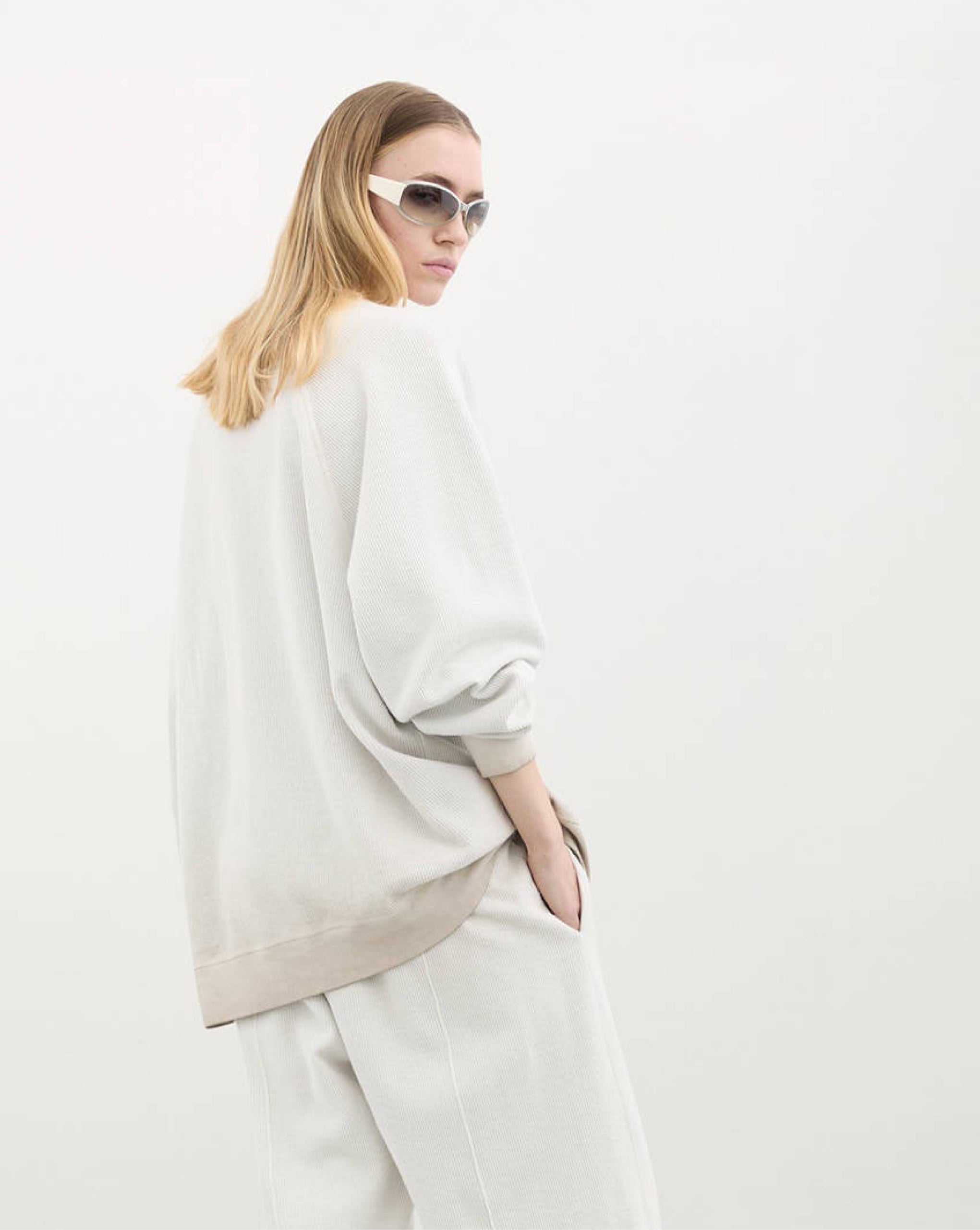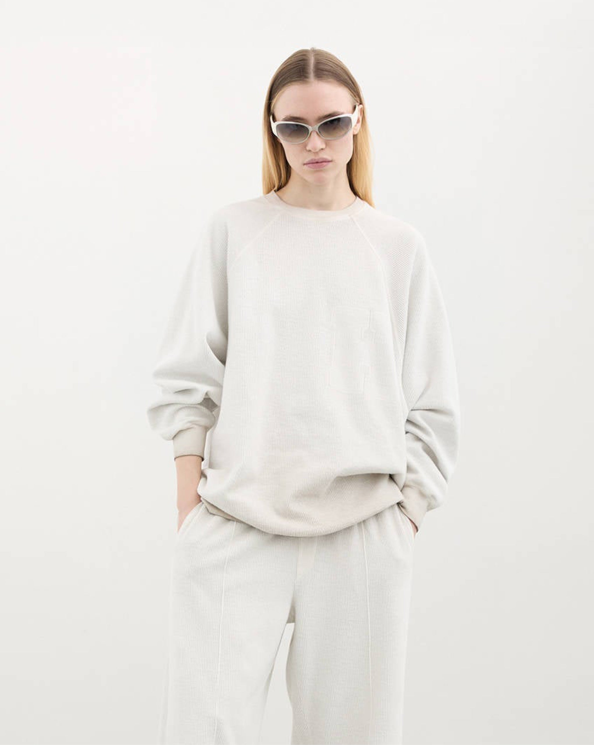 Halfboy oversized crewneck sweatshirt defined by its relaxed silhouette and textured finish. Designed with raglan sleeves and ribbed trims, it combines comfort with a modern street-inspired aesthetic. The tonal H detail at the chest adds a subtle graphic accent, while the pure cotton construction ensures breathability and softness