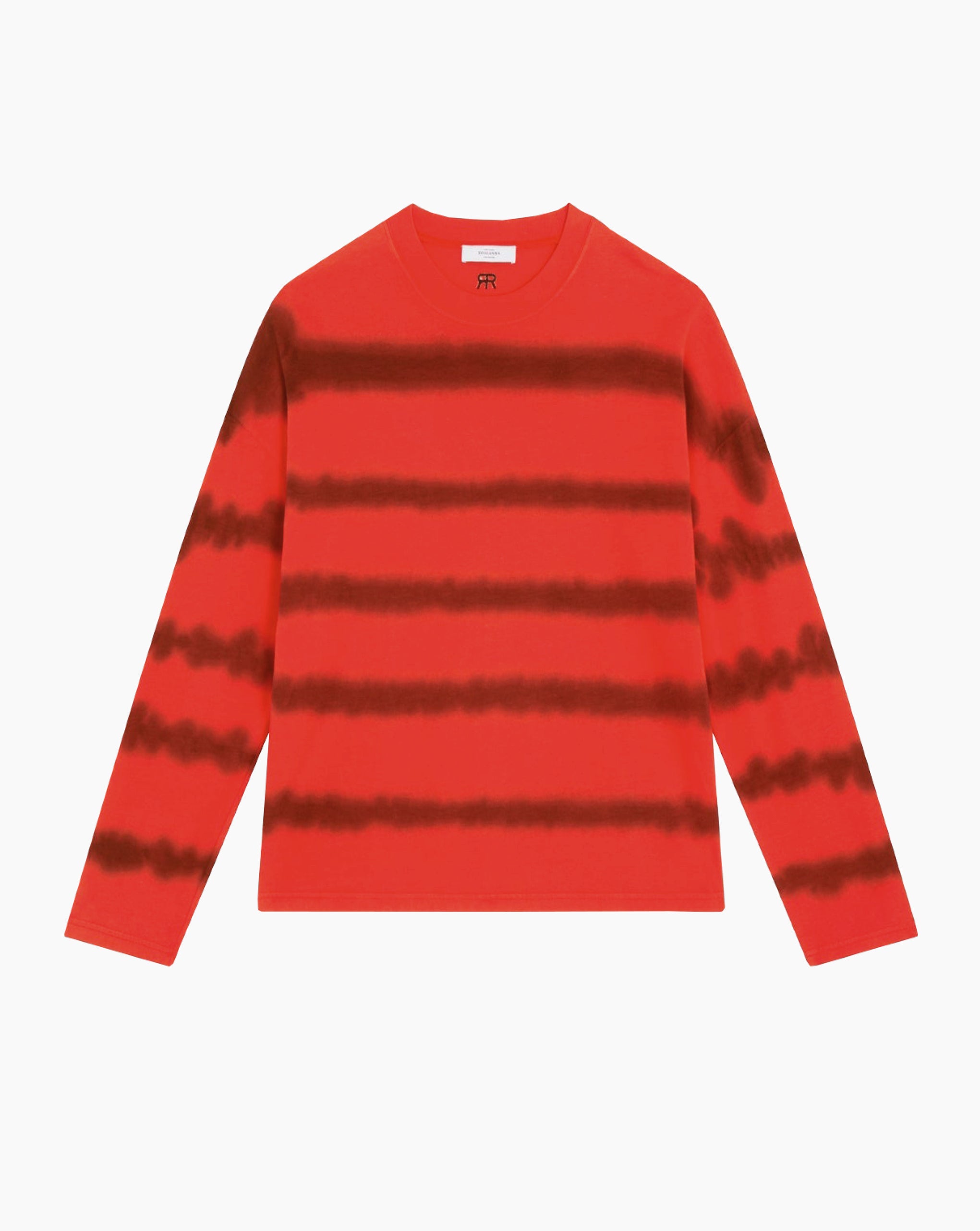 tie-dye pattern achieved by hand spraying, making each piece unique. Comes with embroidered "R" on the back of the neckline