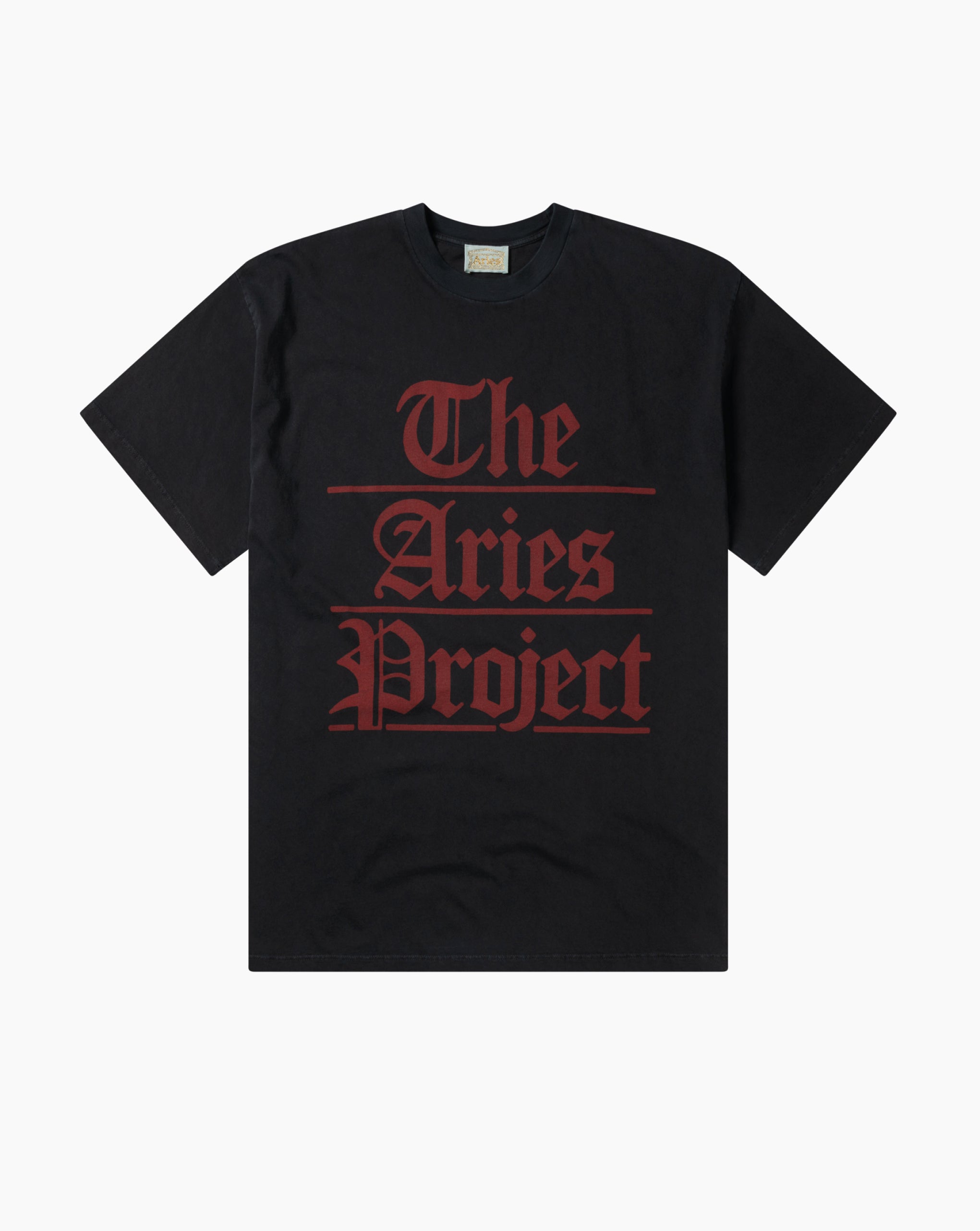 Aries short sleeve t-shirt with archival 'the aries project' graphic on the front, with a stone wash treatment for a washed out, faded effect