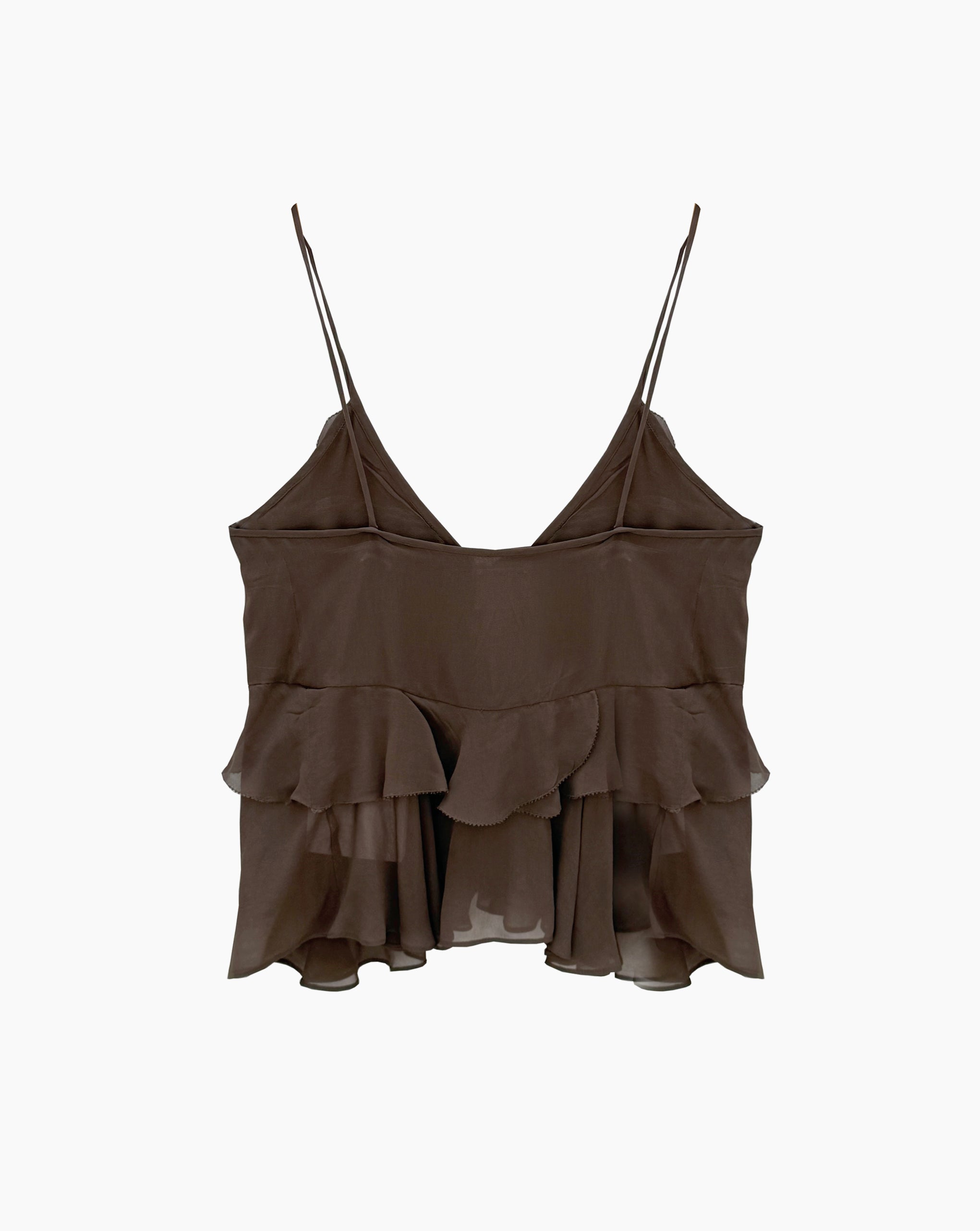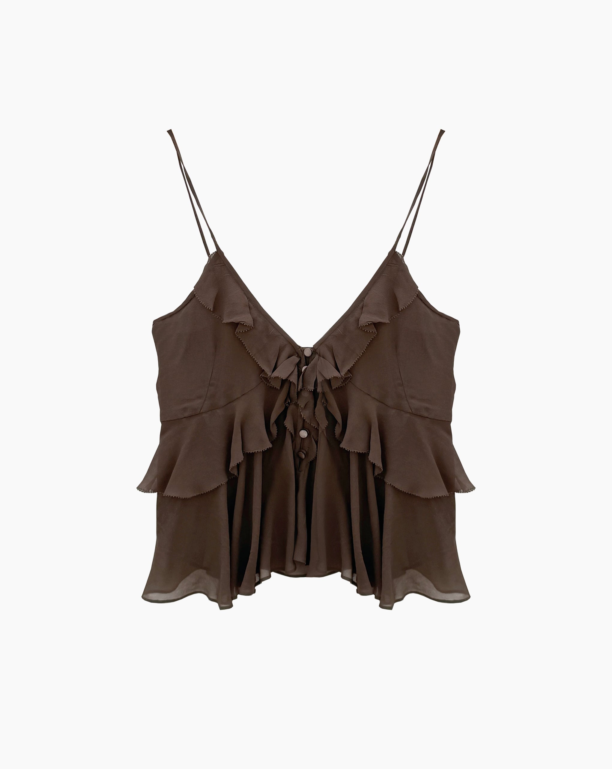 Marant Etoile ruffled georgette top with a low-cut V-neckline, thin shoulder straps and buttoned front