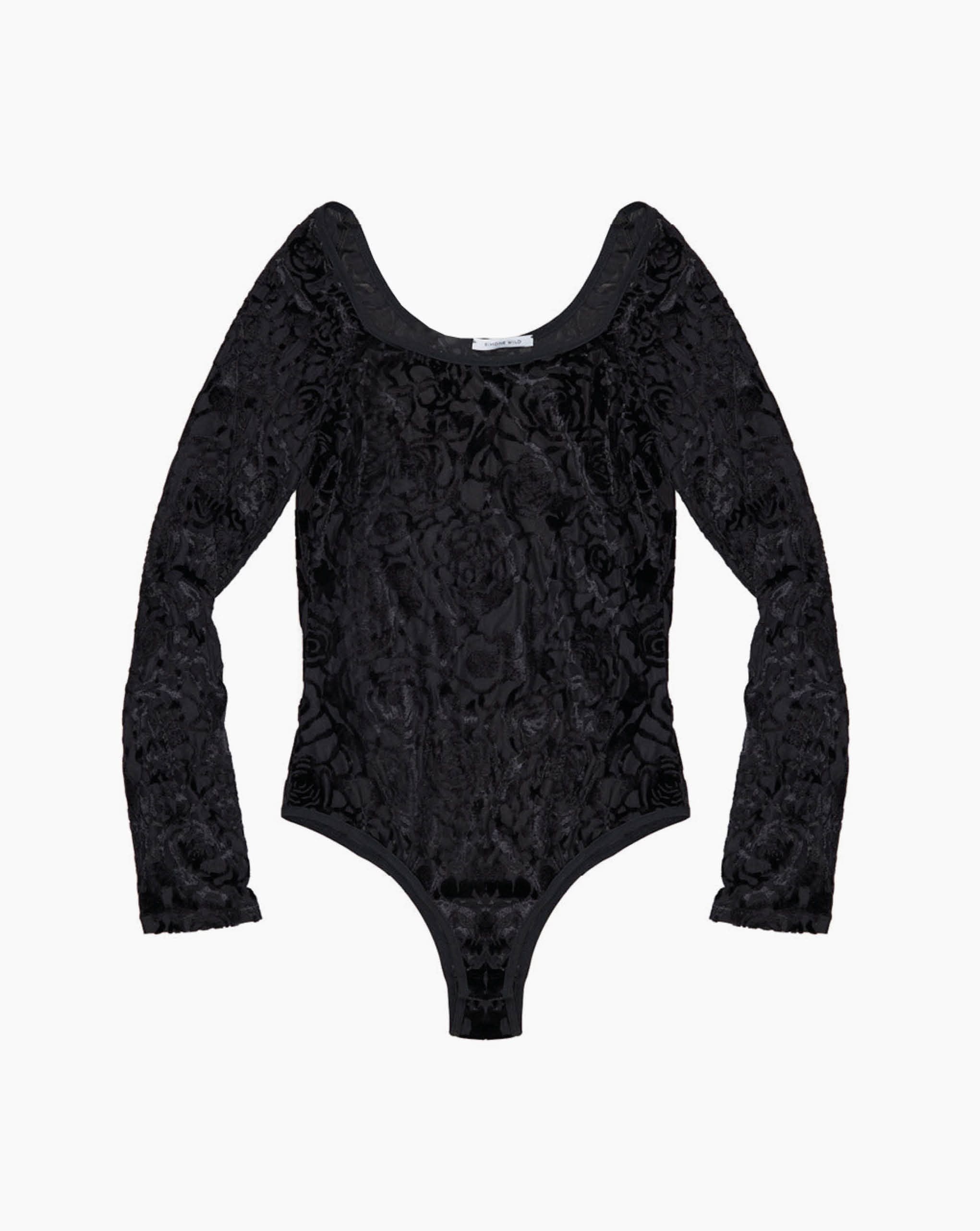 Simone Wild fitted velvet rose body with long sleeves featuring a round neckline