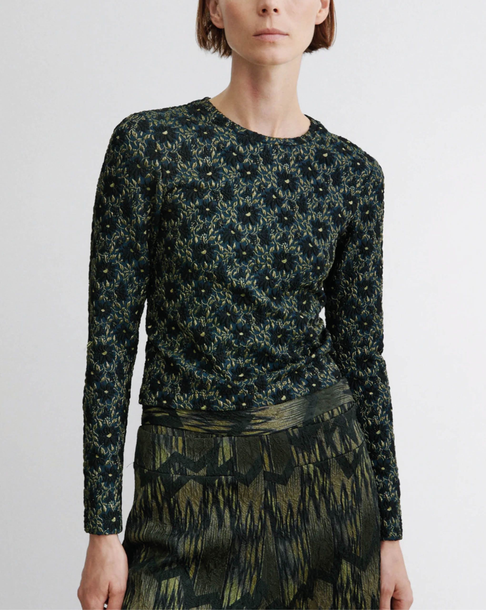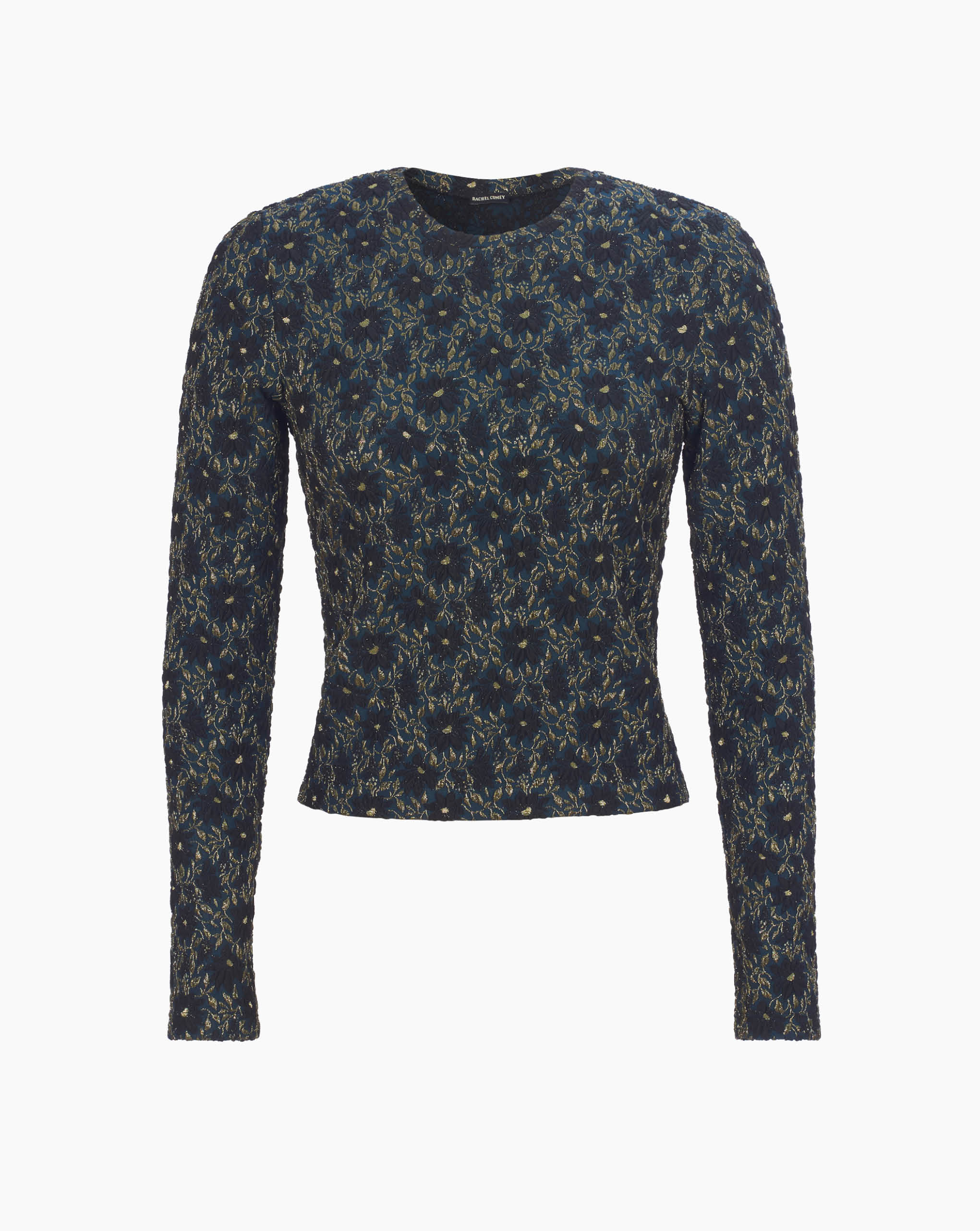 Rachel Comey slim long-sleeve top knit from a textured floral jacquard fabric. Designed with a crew neckline and a close fit through the body