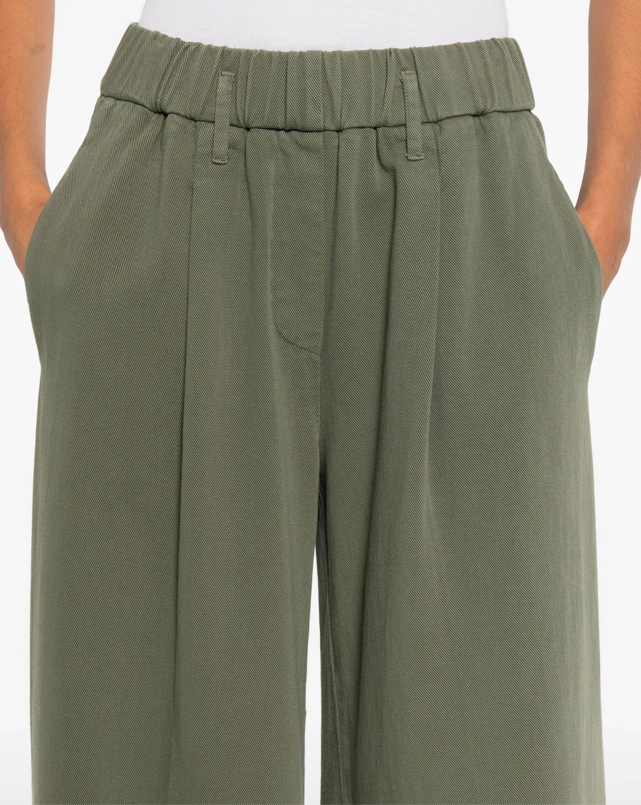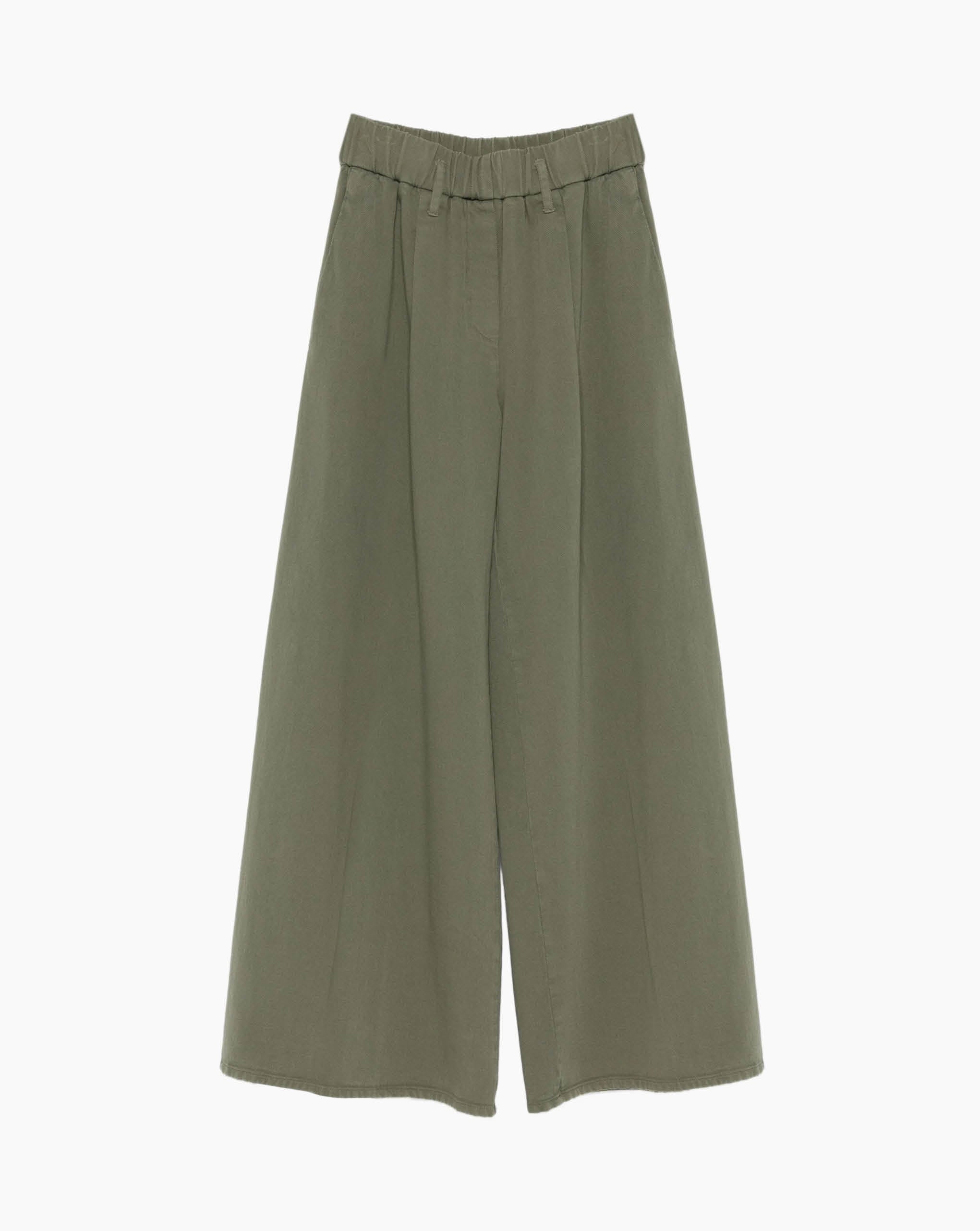 Forte Forte loose pants crafted from soft cotton twill featuring a medium waist with an elastic waistband, relaxed fit through the leg with a generous wide bottom
