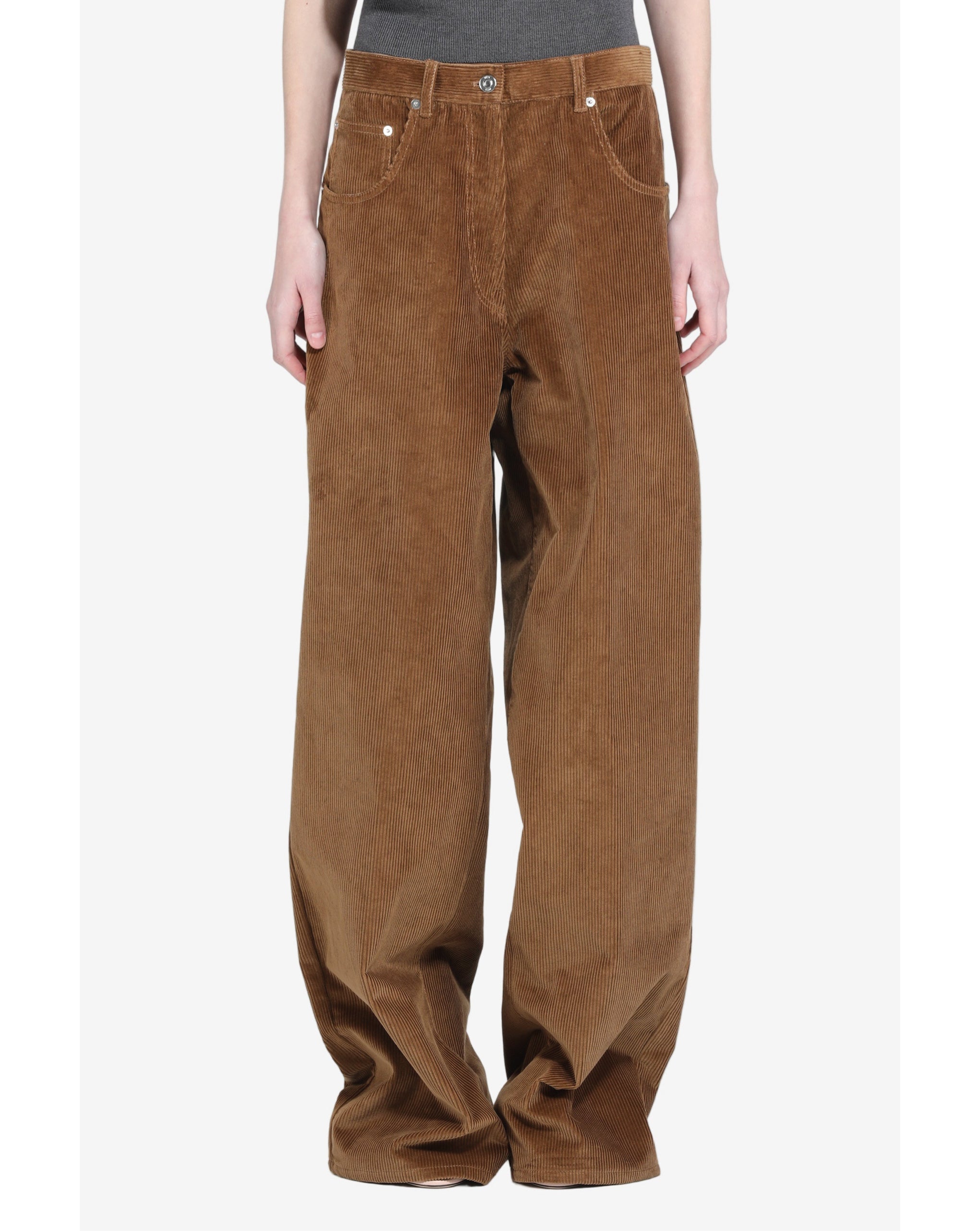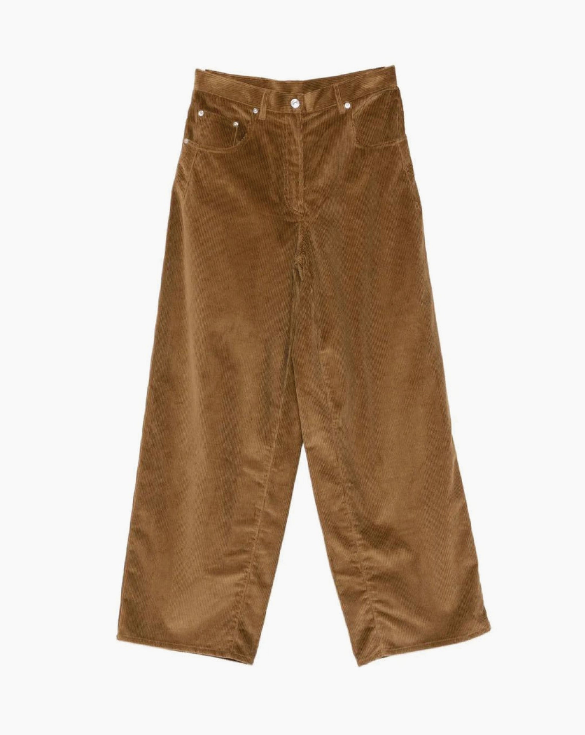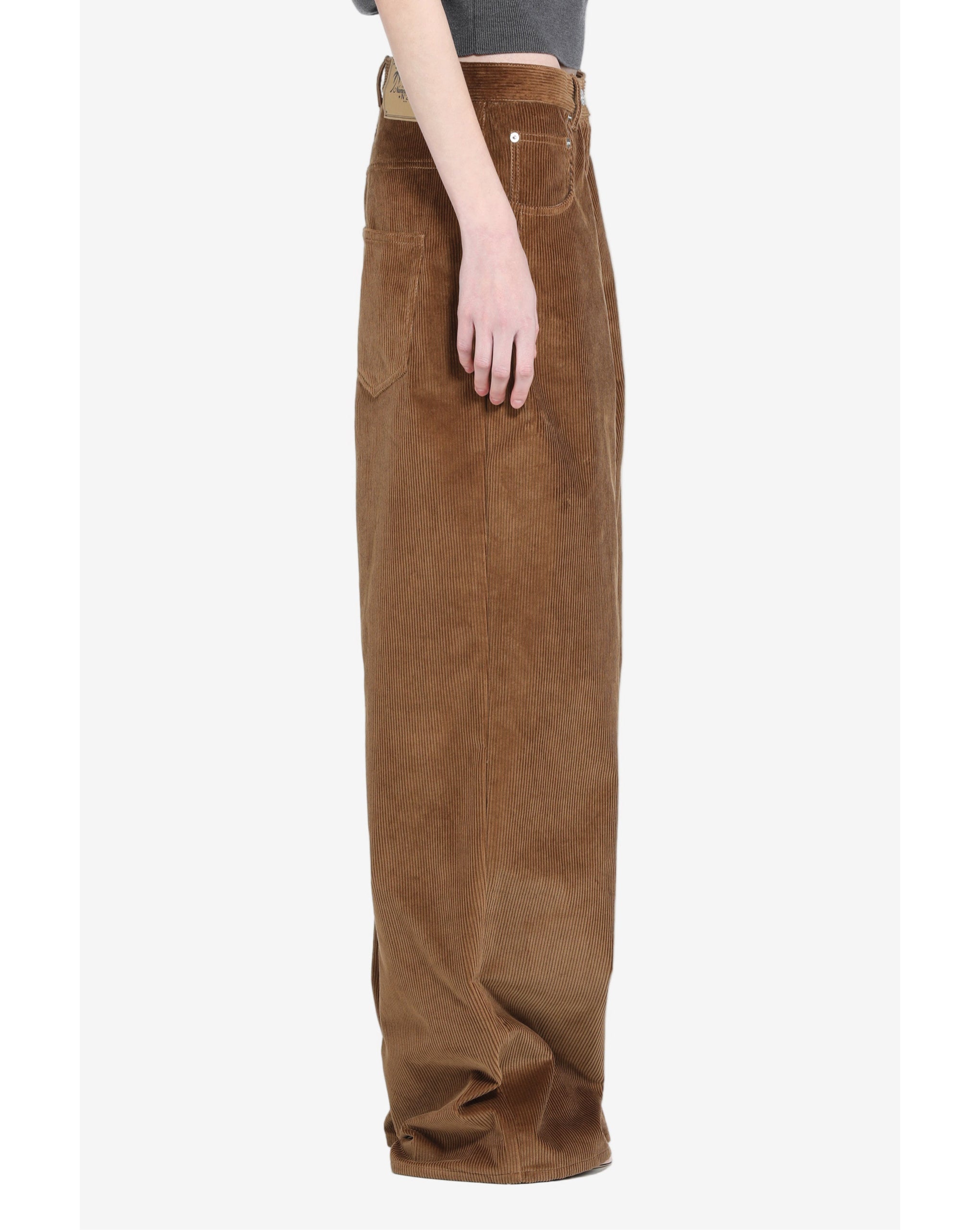 N21 wide-leg corduroy trousers made from a soft, durable fabric. They feature a loose fit for comfort and freedom of movement. The design is complemented by details such as front and back pockets and a front closure