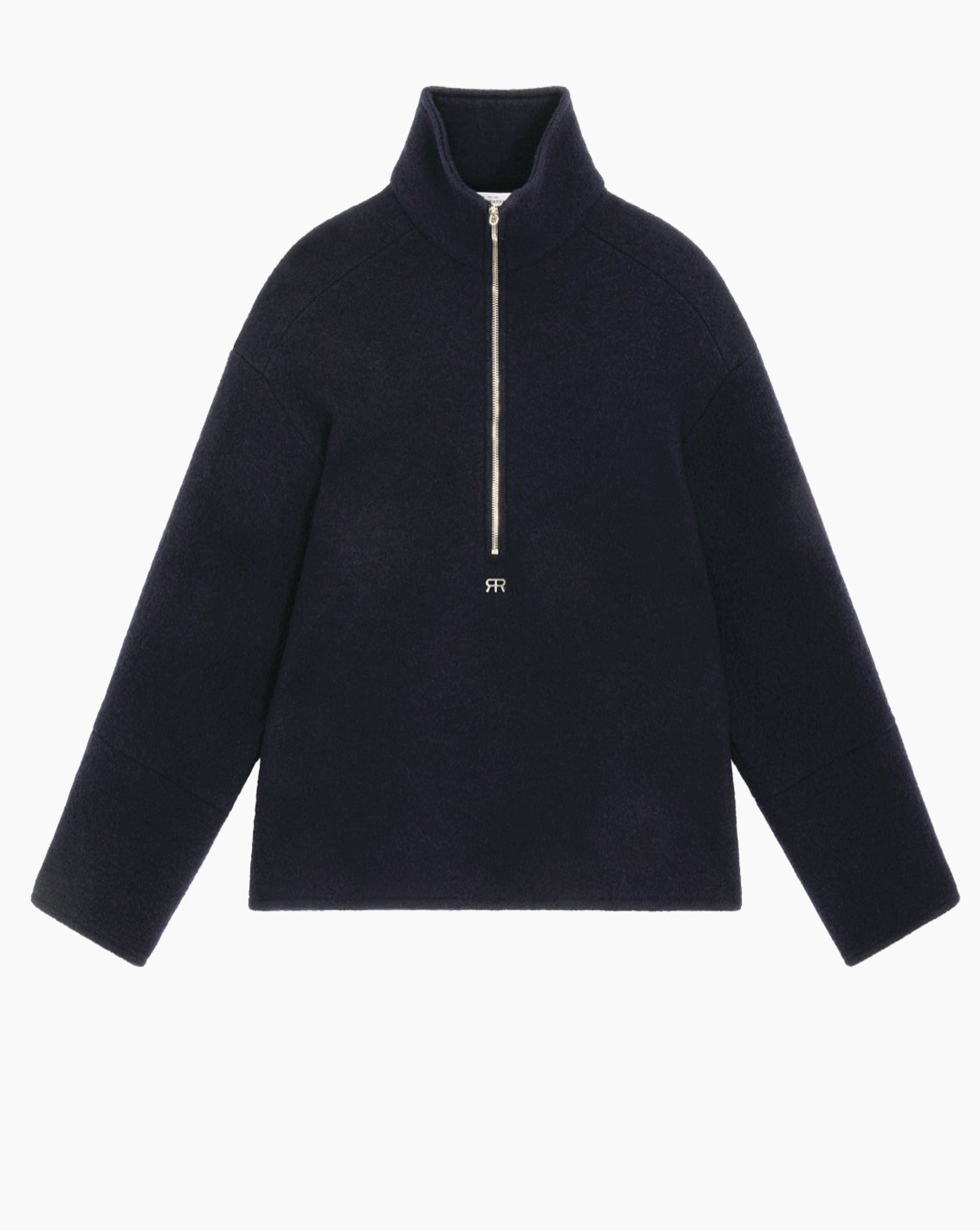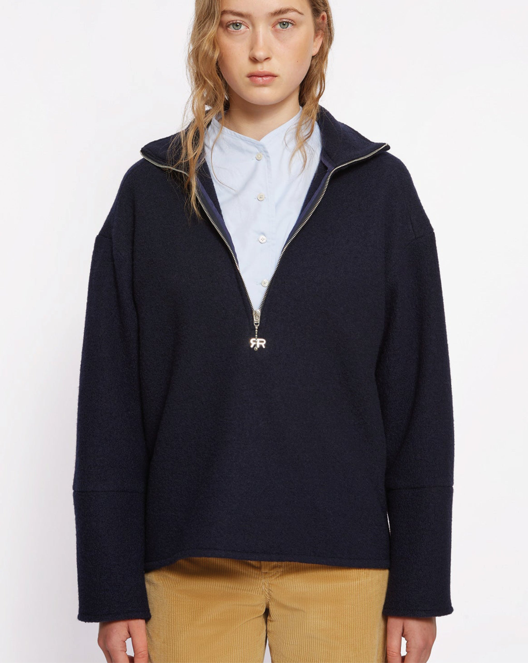 Roseanna long-sleeved top in wool jersey with a straight cut and half-zip fastening