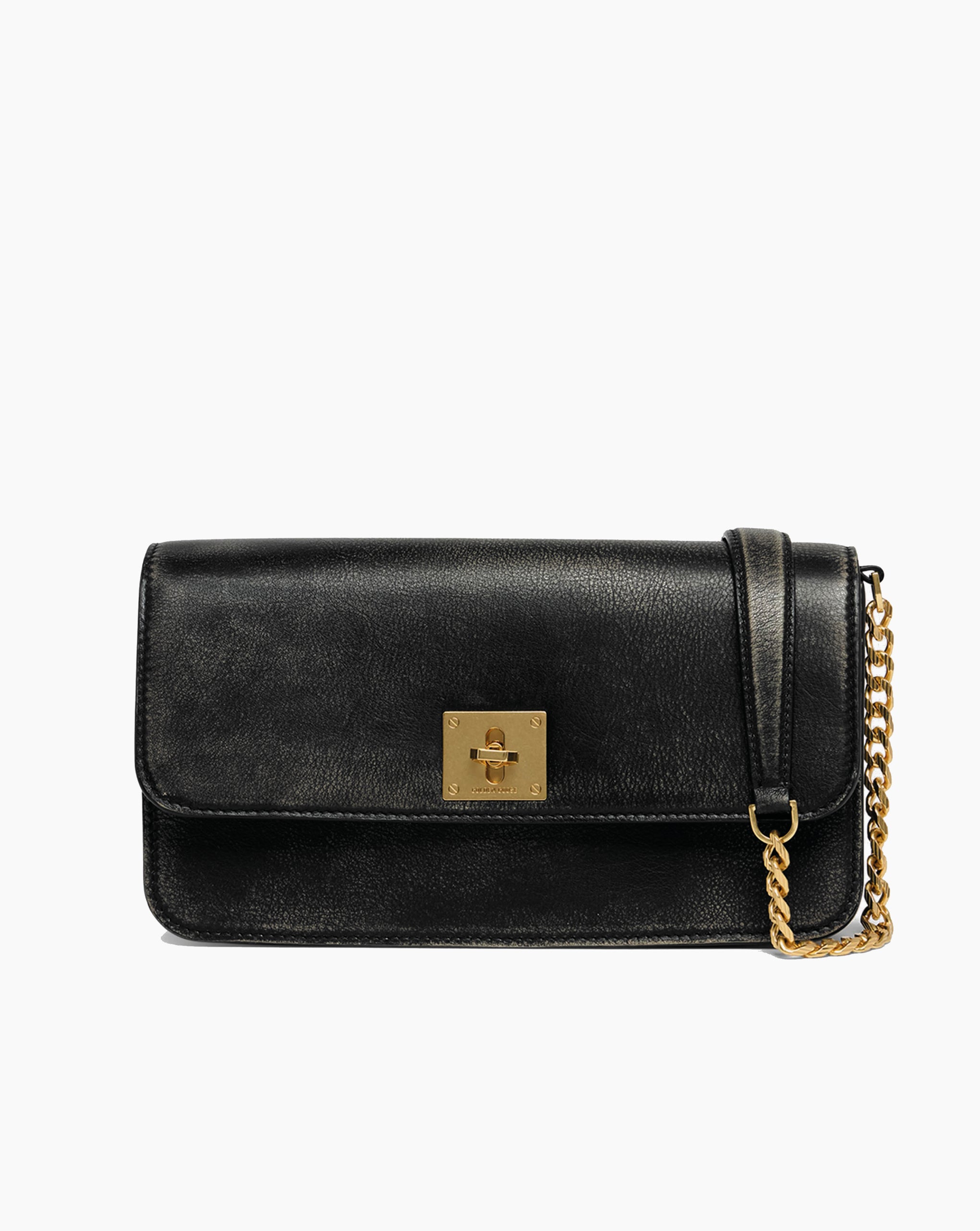 Golden Goose distressed leather shoulder bag with detachable leather and chain-link strap. Comes with a partitioned compartment and internal zip-fastening pocket. Closes with a twist-lock fastening in a logo-engraved gold-tone hardware.