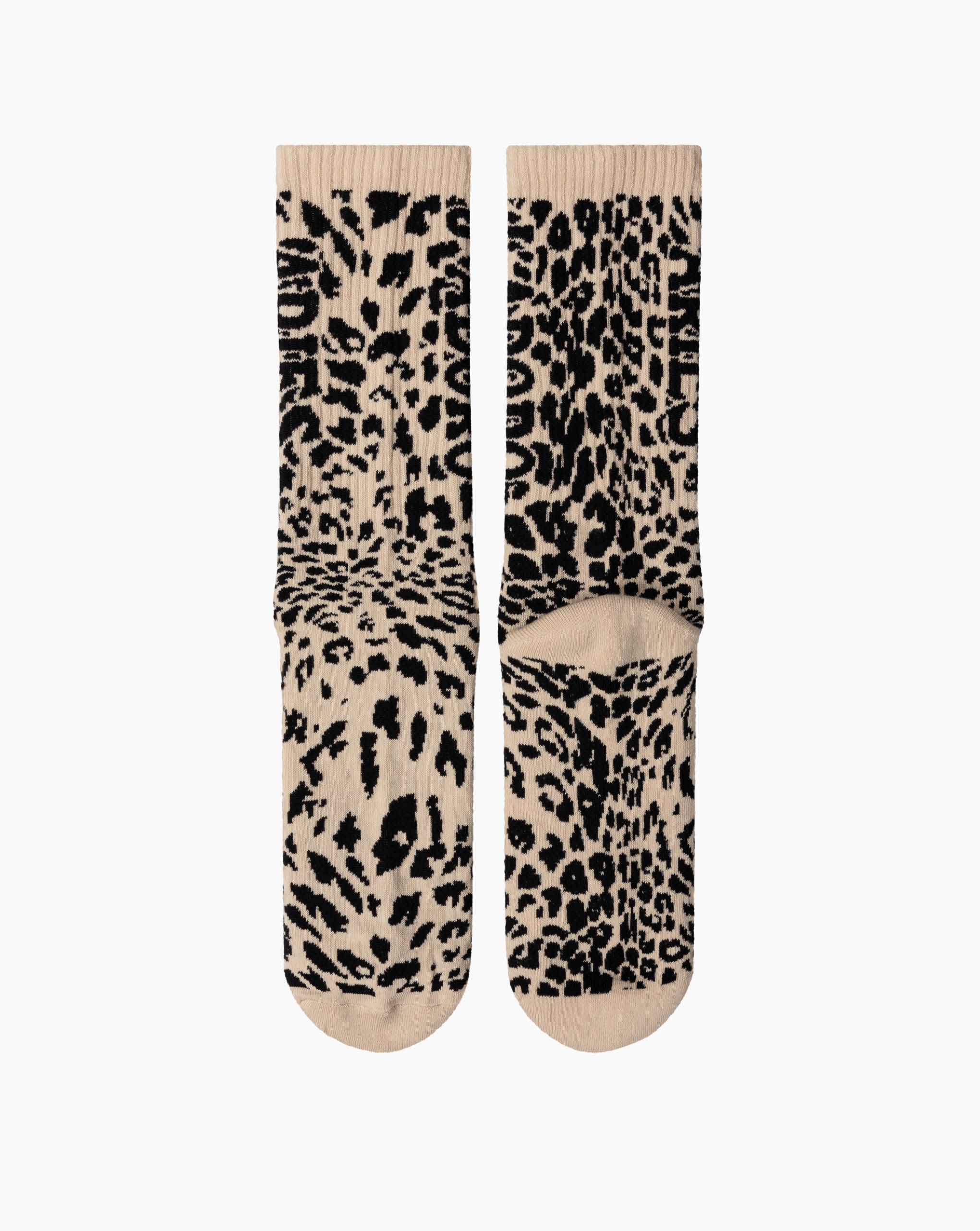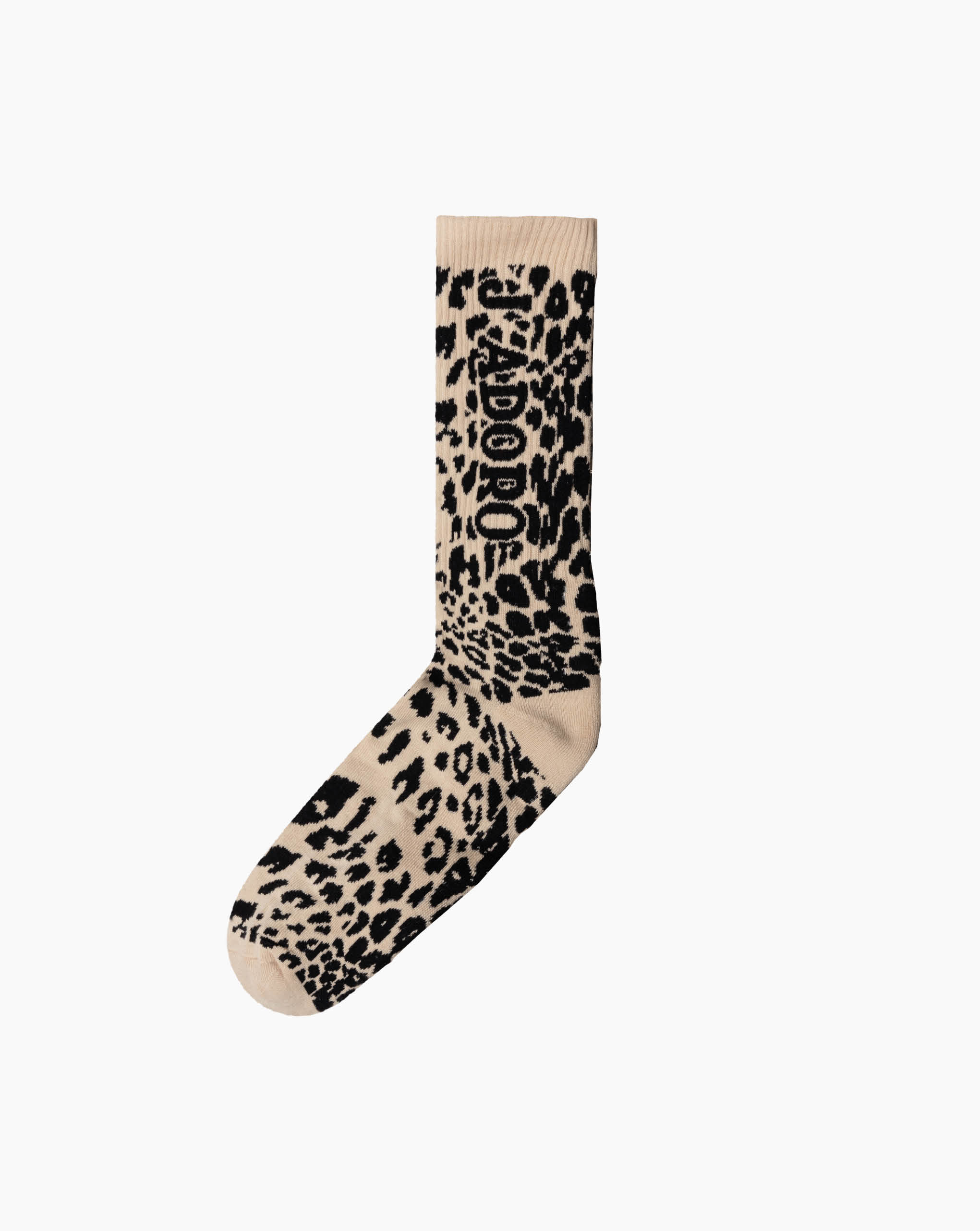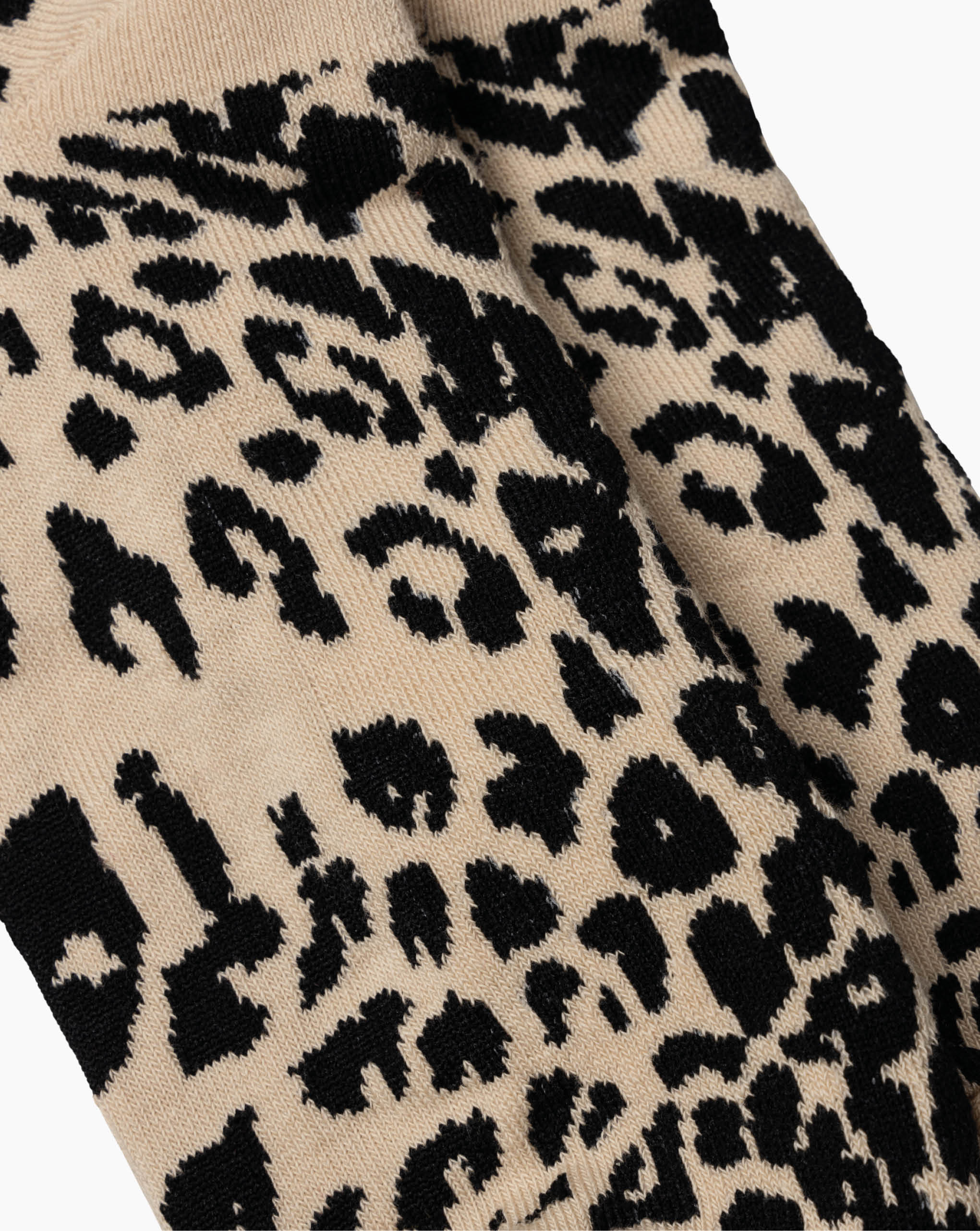 Aries jacquard socks featuring a sporty blend yarn with an all-over leopard print and a j'adoro aries design. They include a padded sole to provide added comfort throughout the day