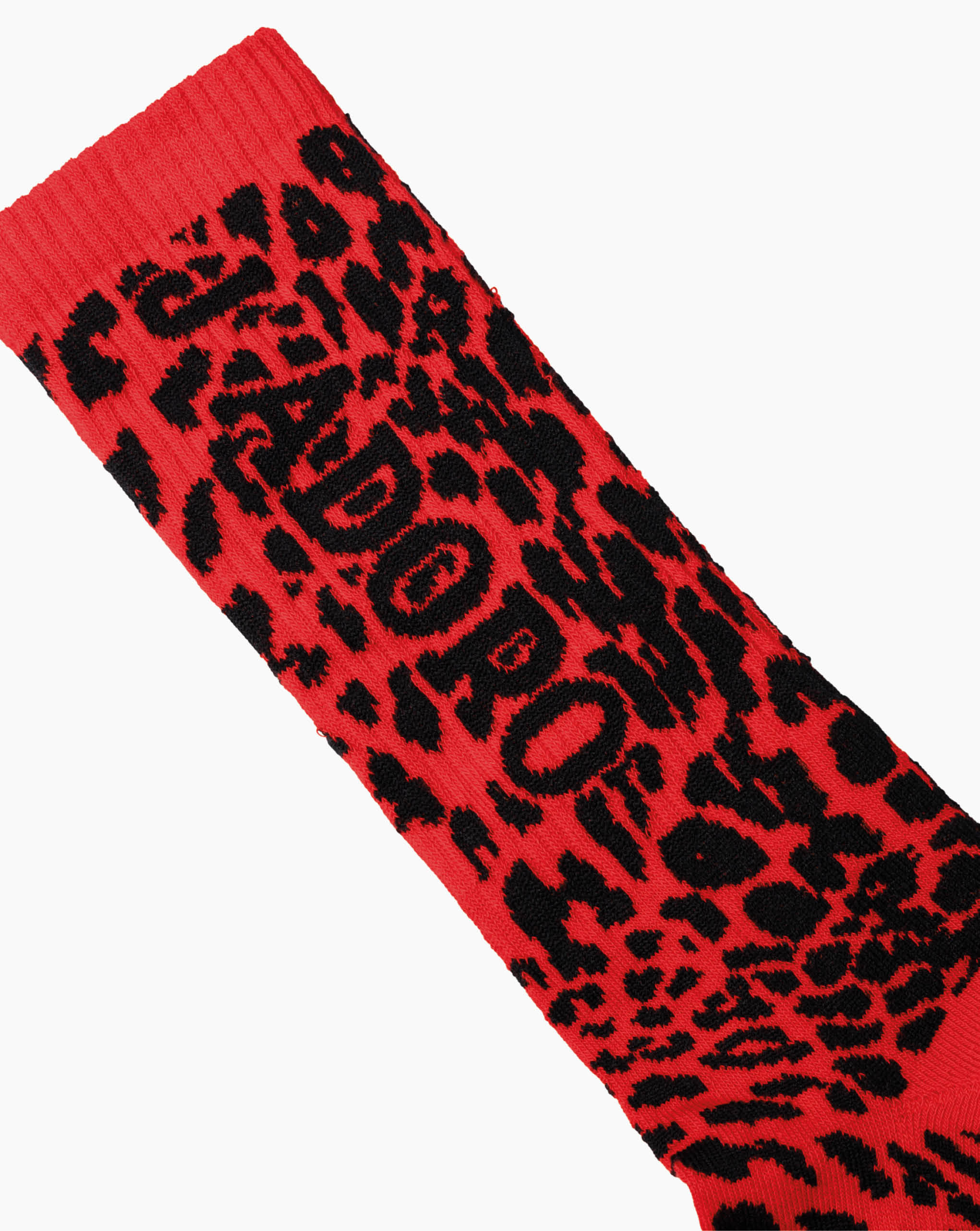Aries jacquard socks featuring a sporty blend yarn with an all-over leopard print and a j'adoro aries design. They include a padded sole to provide added comfort throughout the day