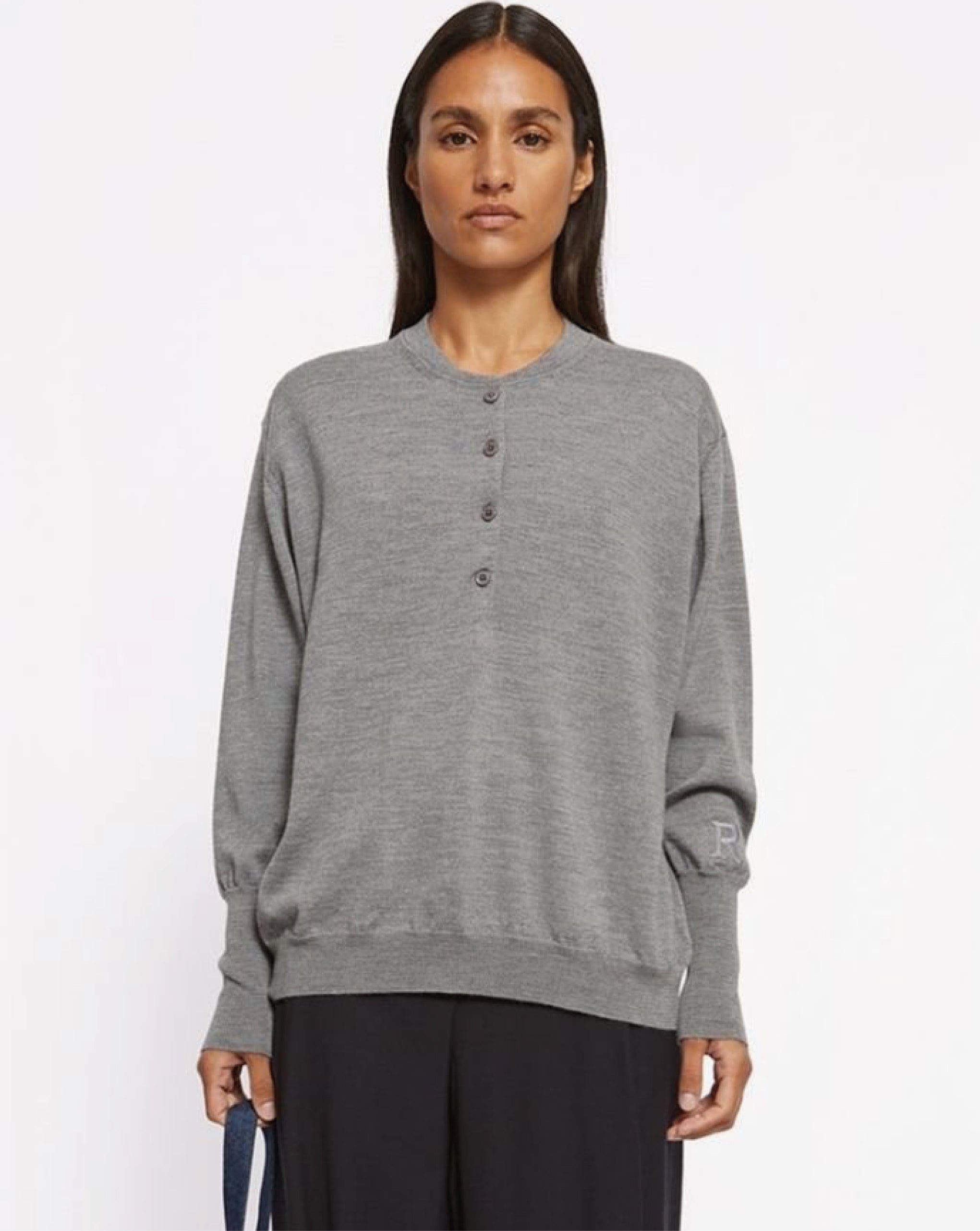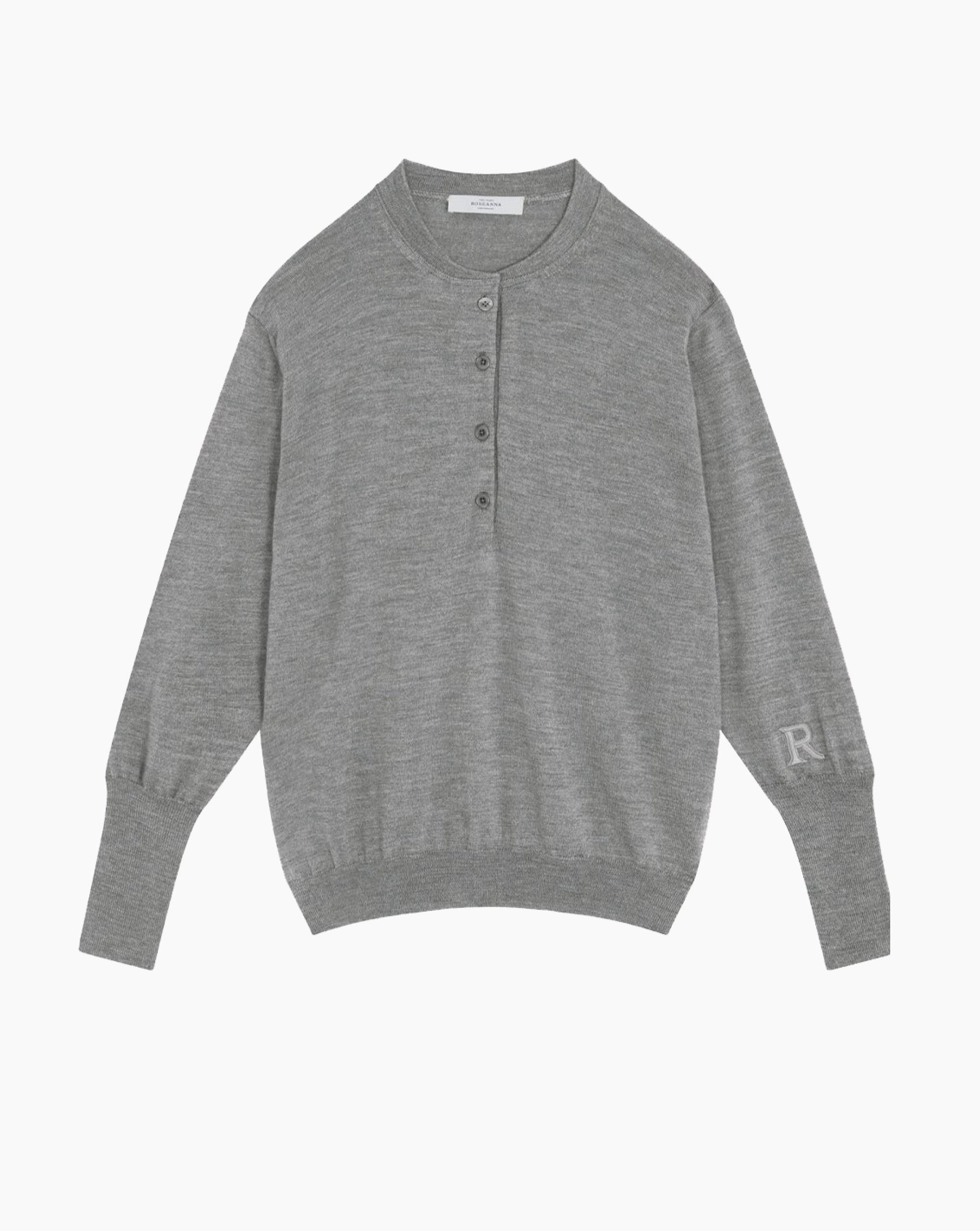 Roseanna ribbed knit sweater in jersey with a straight cut, polo collar, and a four-button fastening, featuring a first button with engraved detailing