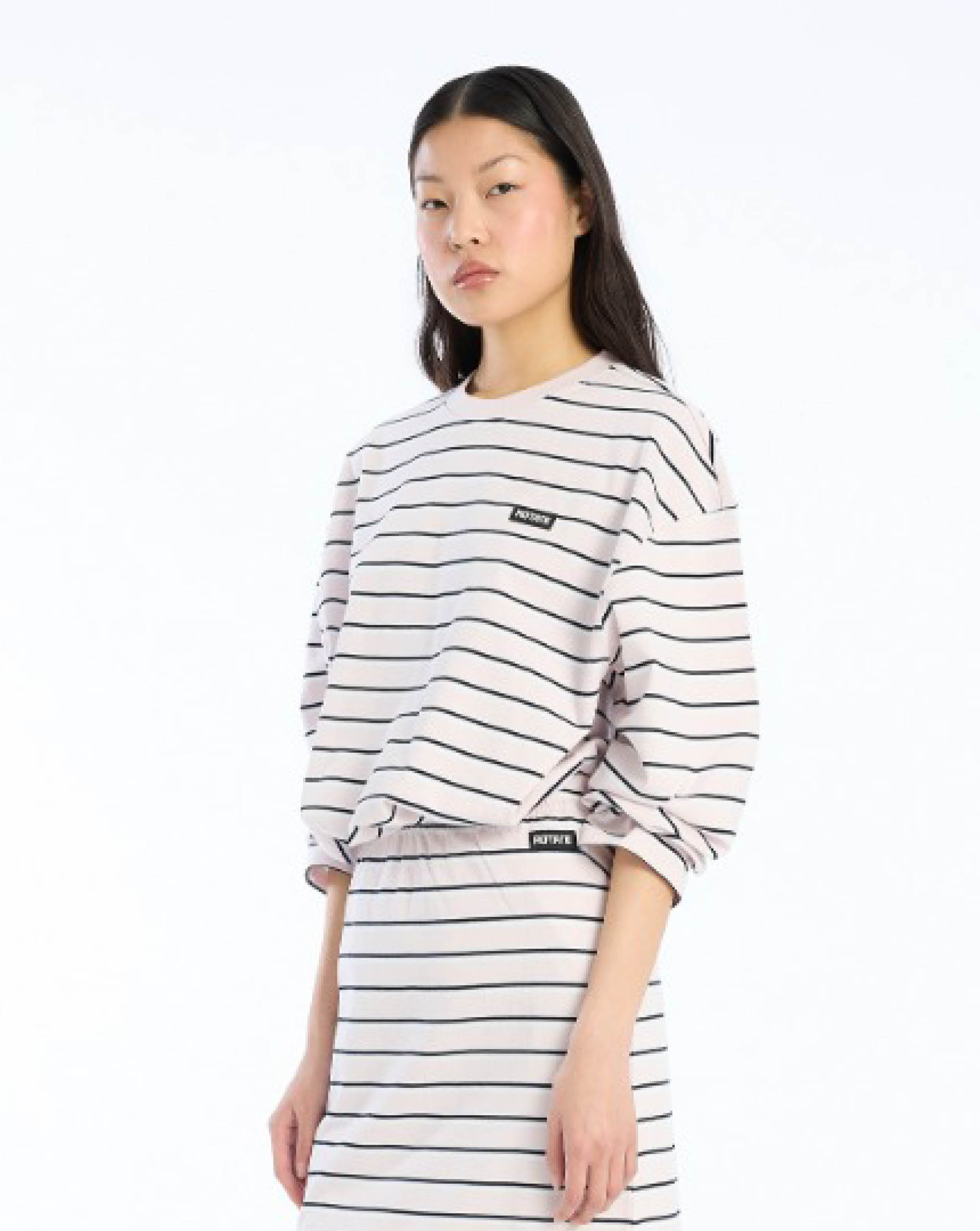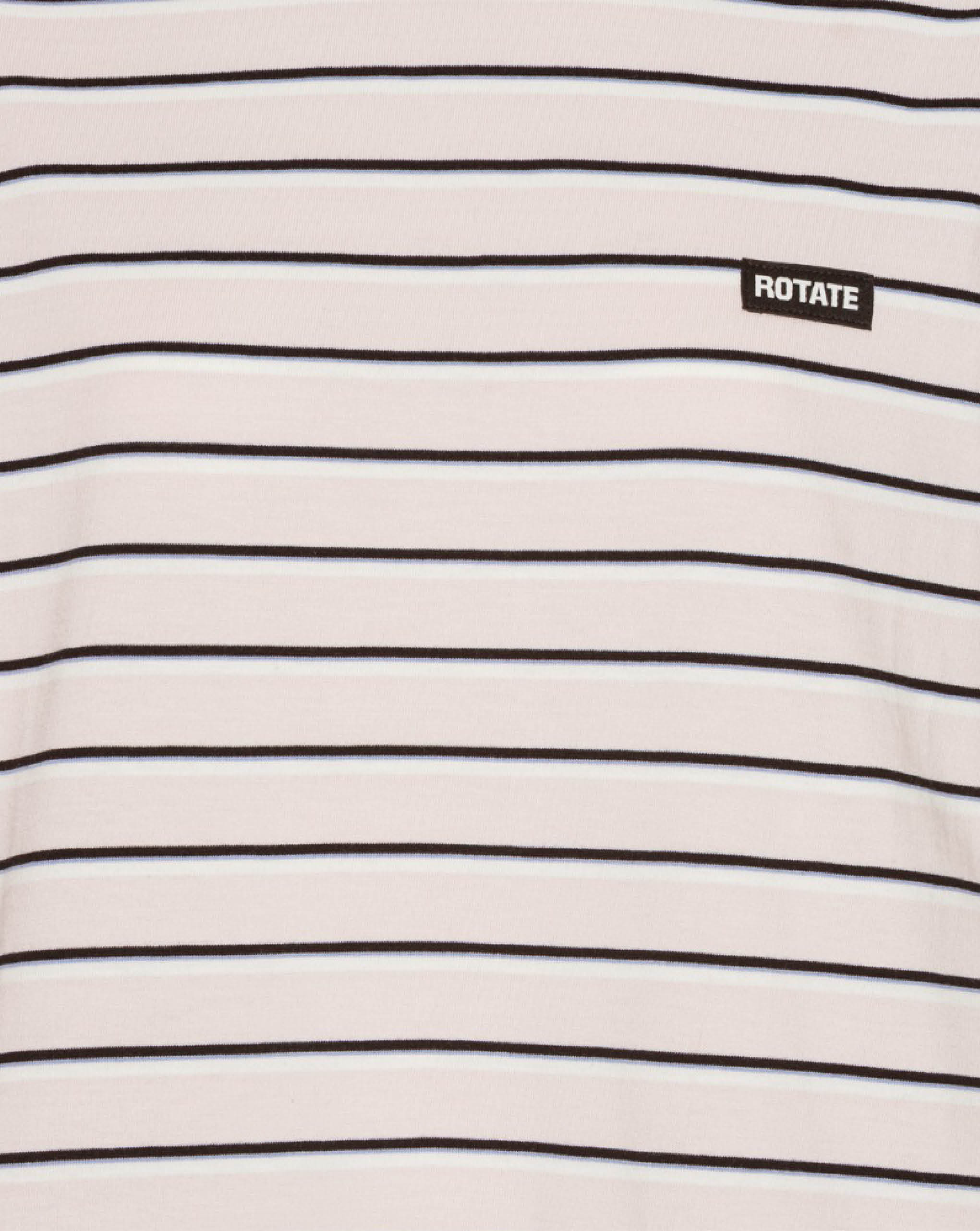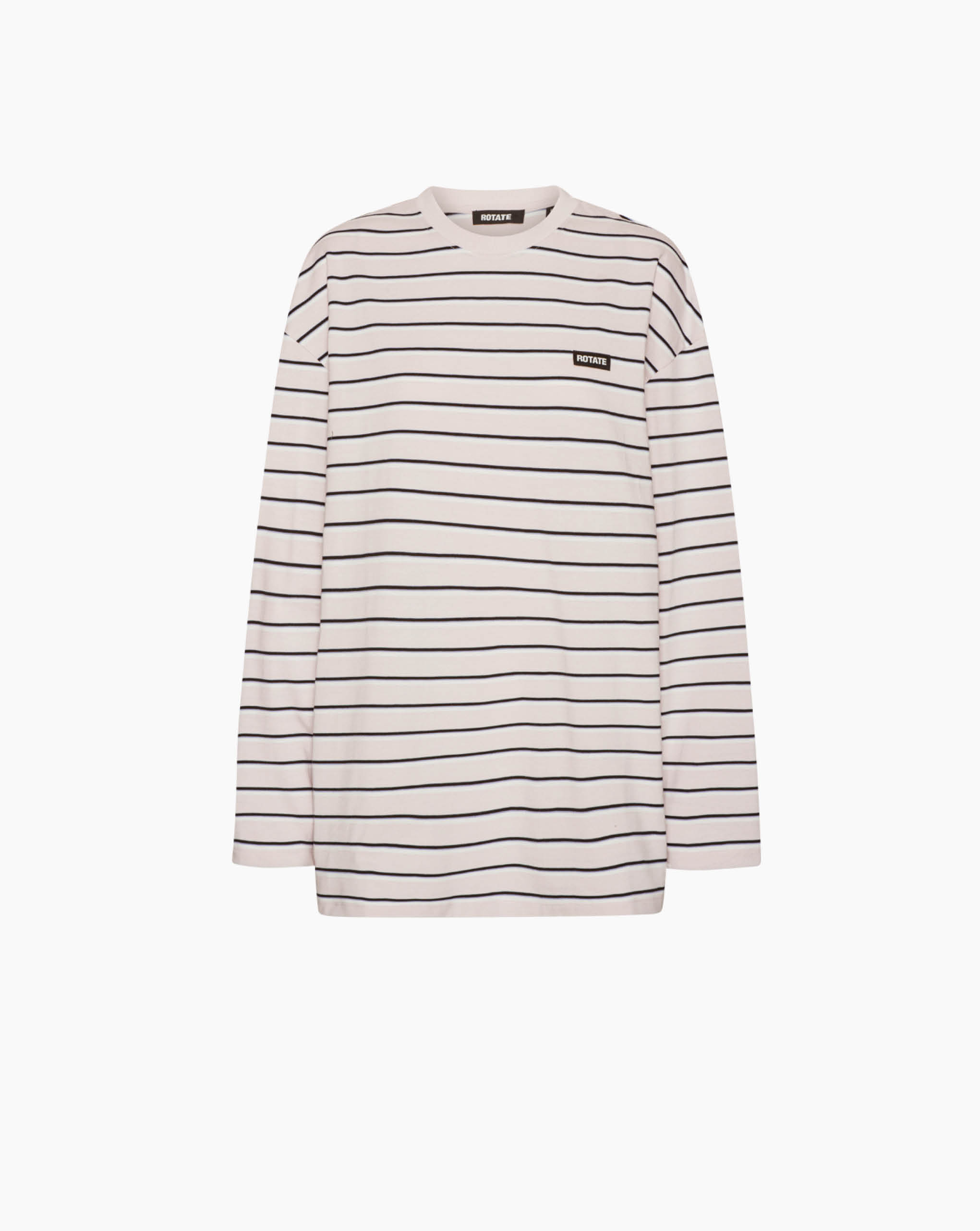 Rotate jersey light pink striped long-sleeved style with a straight fit. Designed with a round neckline and featuring horizontal stripes throughout with a small rotate logo patch is placed on the chest